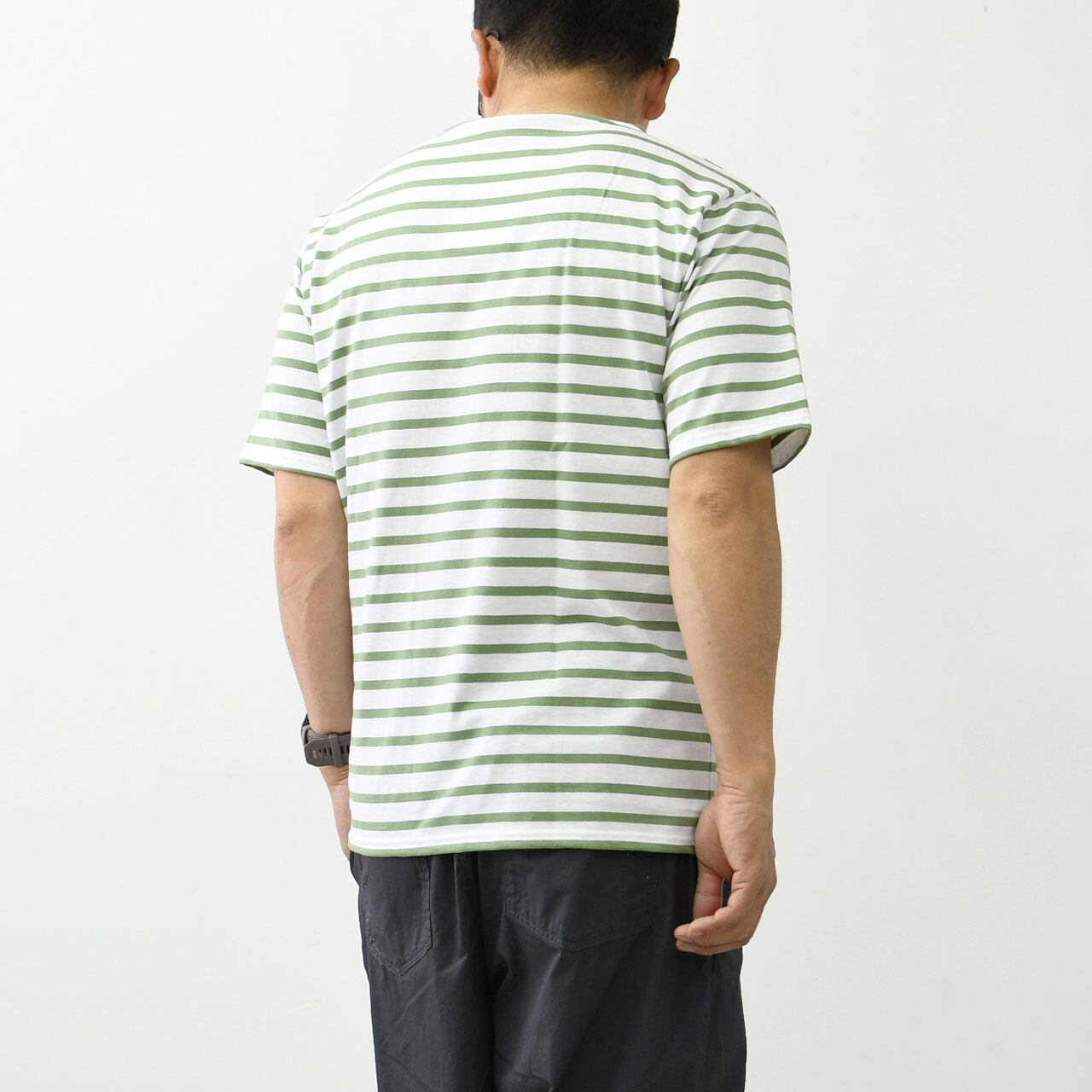 SAINT JAMES [PIRIAC BORDER - NEIGE×AMANDE] [pb-nei-ama] セントジェームス 正規販売店・カットソー・半袖Tシャツ・Tシャツ・コットン・ポートネック・ピリアック ボーダー・白/セージグリーン・MEN'S / LADY'S [2025SS]