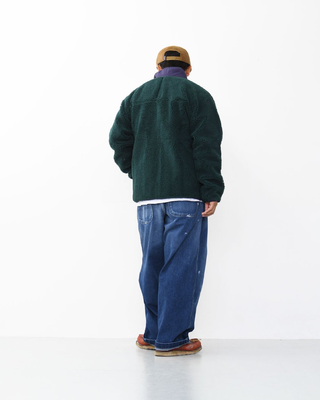 プラスチック汚染の危機にさらされている沿岸部の共同体から供給された、オーシャンサイクルの認証済みのリプリーブ・リサイクル・ポリエステル100%の6ミリ厚パイル・フリースで作ったソフトで温かい防風性ジャケット。裏地はリサイクル・ポリエステル100%のタフタで、PFASを意図的に使用せずに製造されたDWR(耐久性撥水)加工済み