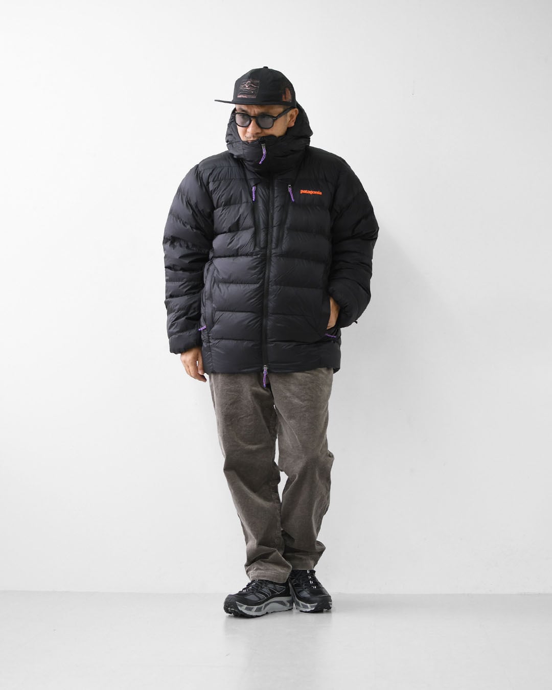 パタゴニア製品で唯一900フィルパワー・ダウンのインサレーションを採用し、極寒の状況にも対応。完全バッフル構造とディファレンシャルカットの裏地がダウンのロフトを最大限に高めながら冷域を解消。裏地のサイドパネルに施した伸縮性のステッチはジャケットを体に密着させて熱を閉じ込め、すきま風の侵入を防止