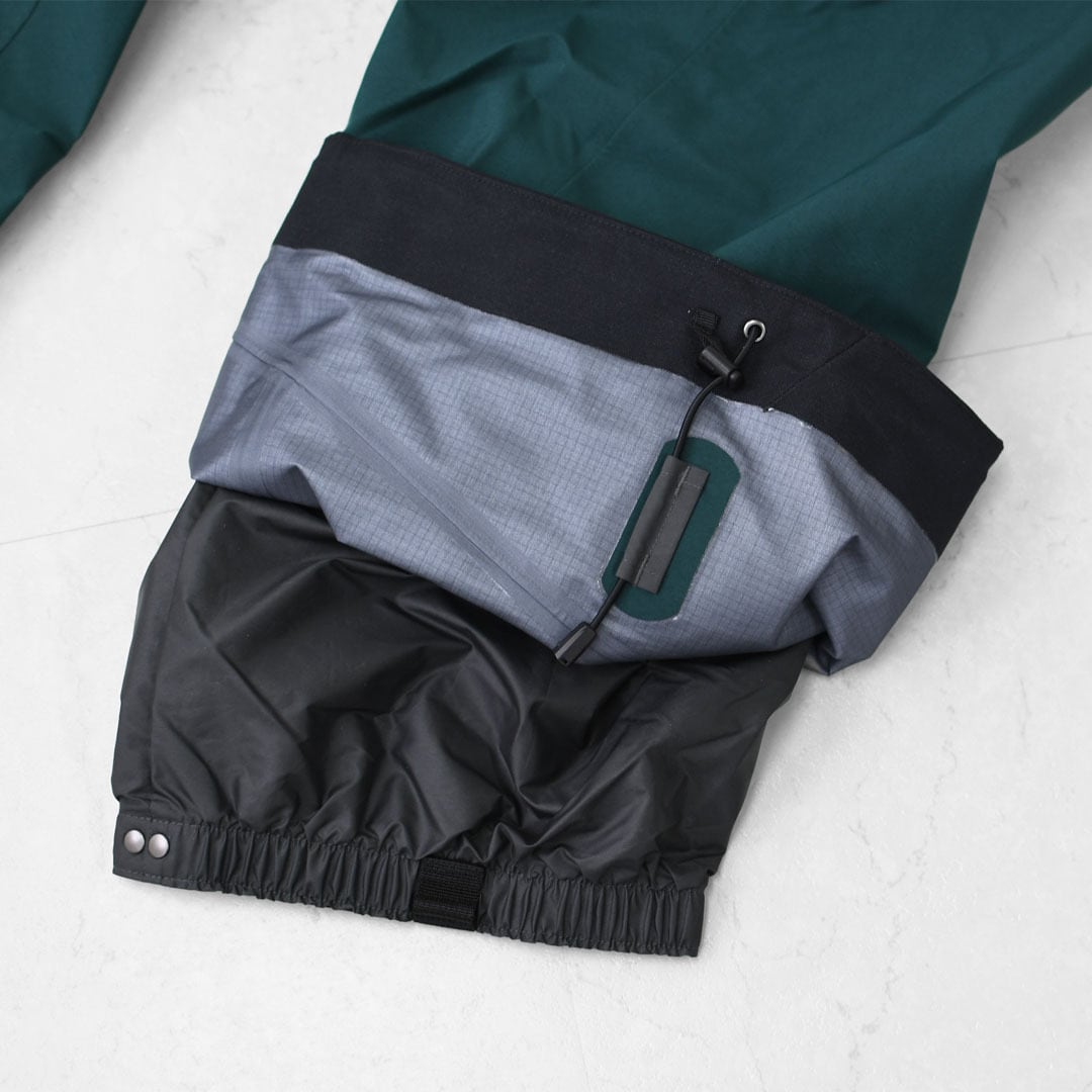両裾に調節可能な伸縮性ショックコード、雪の浸入を防ぐゲイター、脚の内側と裾を保護する頑丈なエッジガード付き