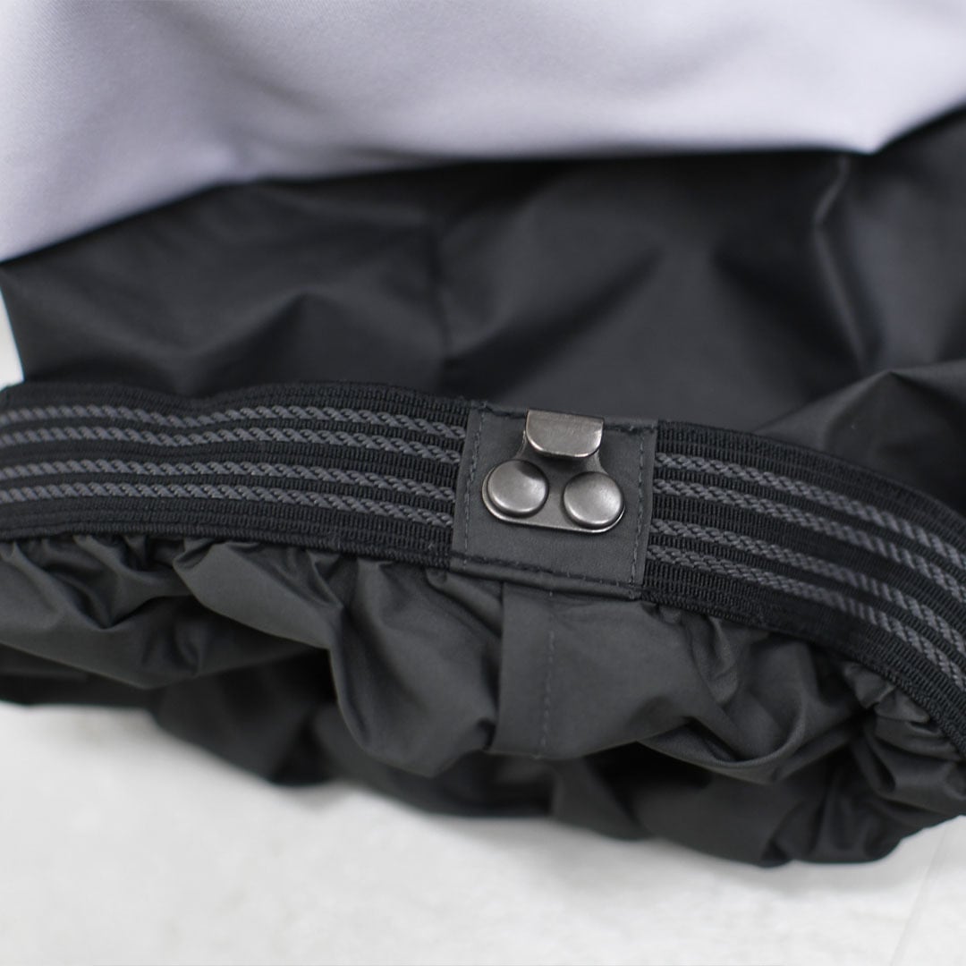 ドロップシートを採用した、ヒップをしっかりとカバーするビブ。用を足しやすいツーウェイ・スライダーのサイドジッパーはベンチレーションにも効果的
