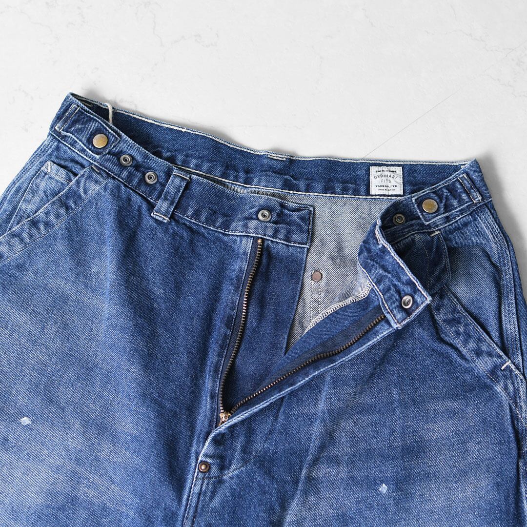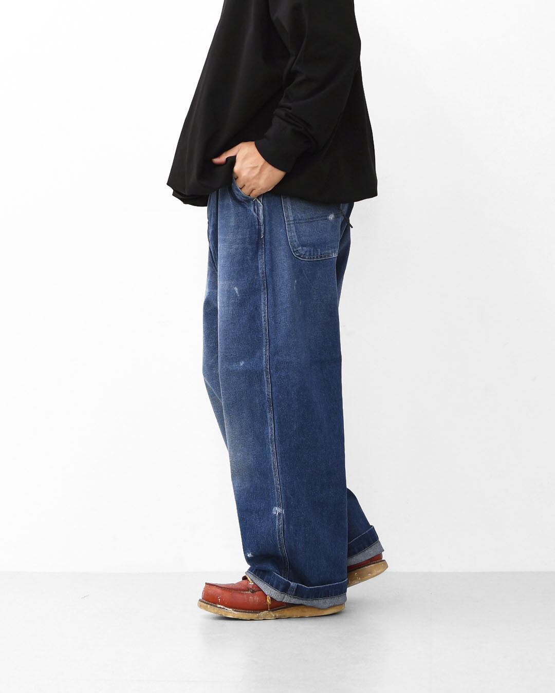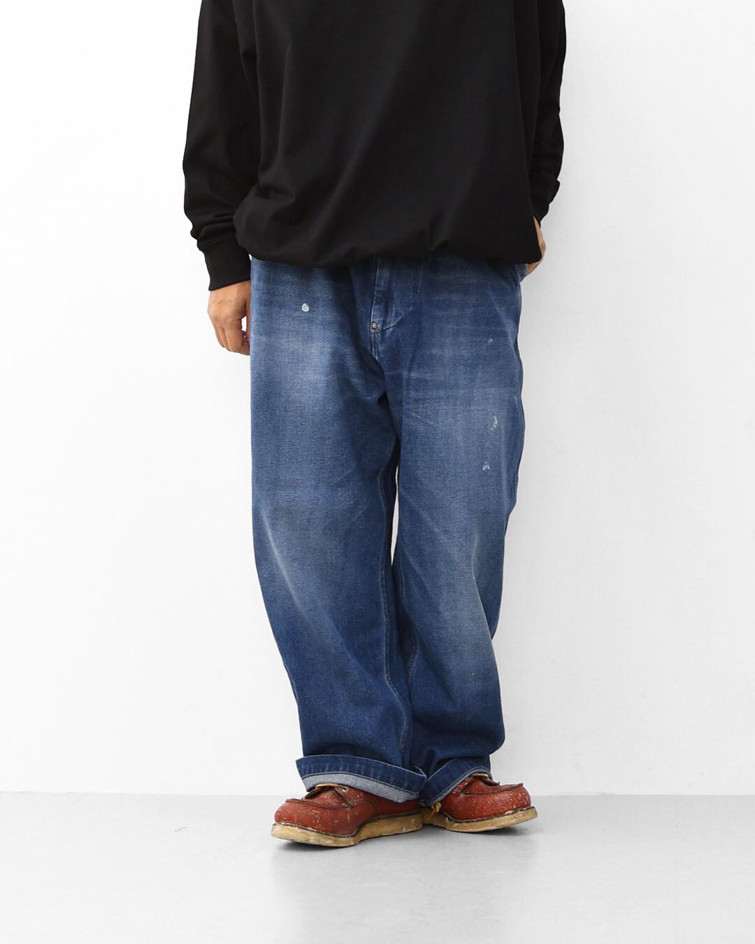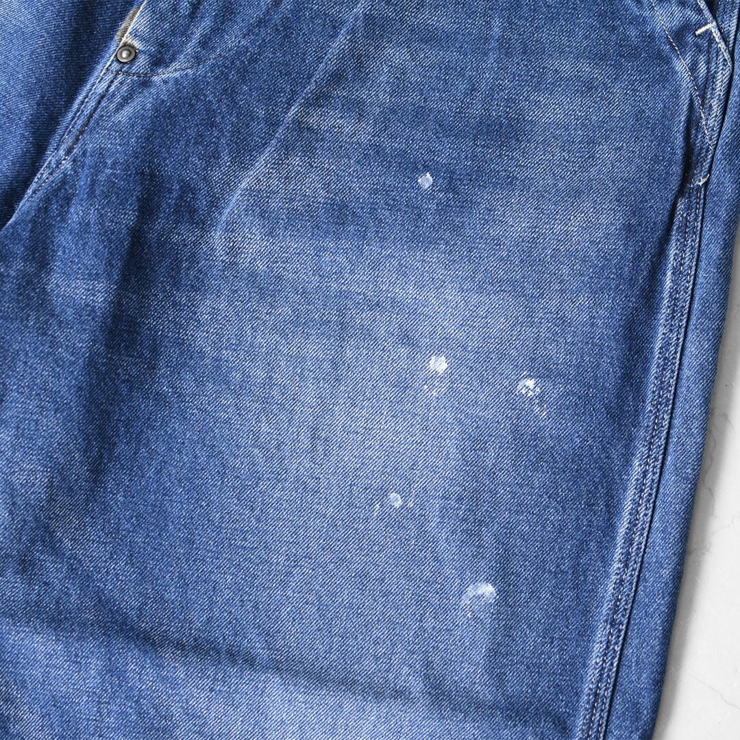 10.5ozのライトオンスデニムに、USED加工やペンキの表情を重ねた一本。