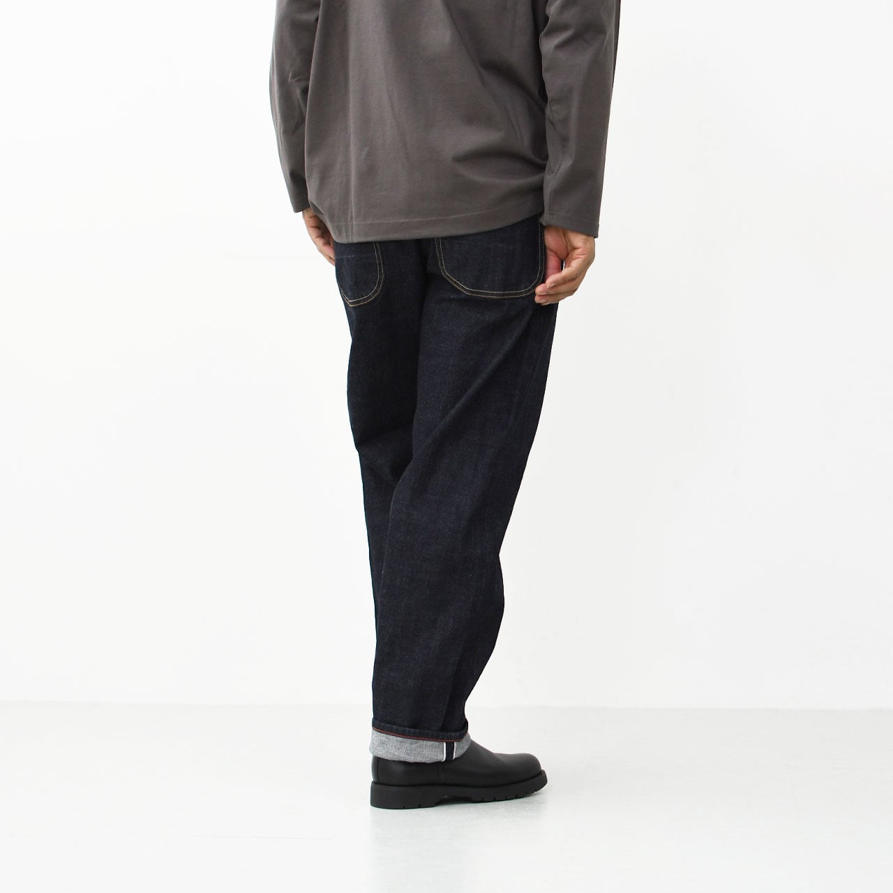 旧式力織機で丁寧に織り上げられたセルビッチストレッチデニムを使用した、ルーズシルエットのデニムパンツ。