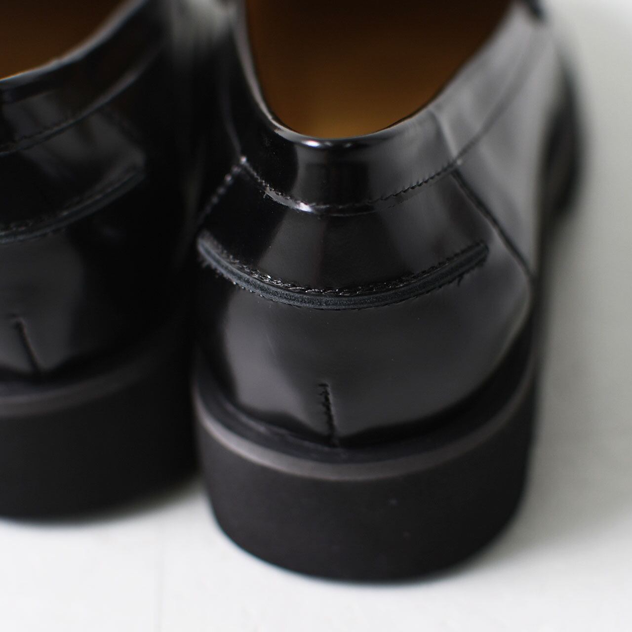 ほんのり丸みを帯びたトゥと、艶のあるレザーの質感が絶妙なバランスで、