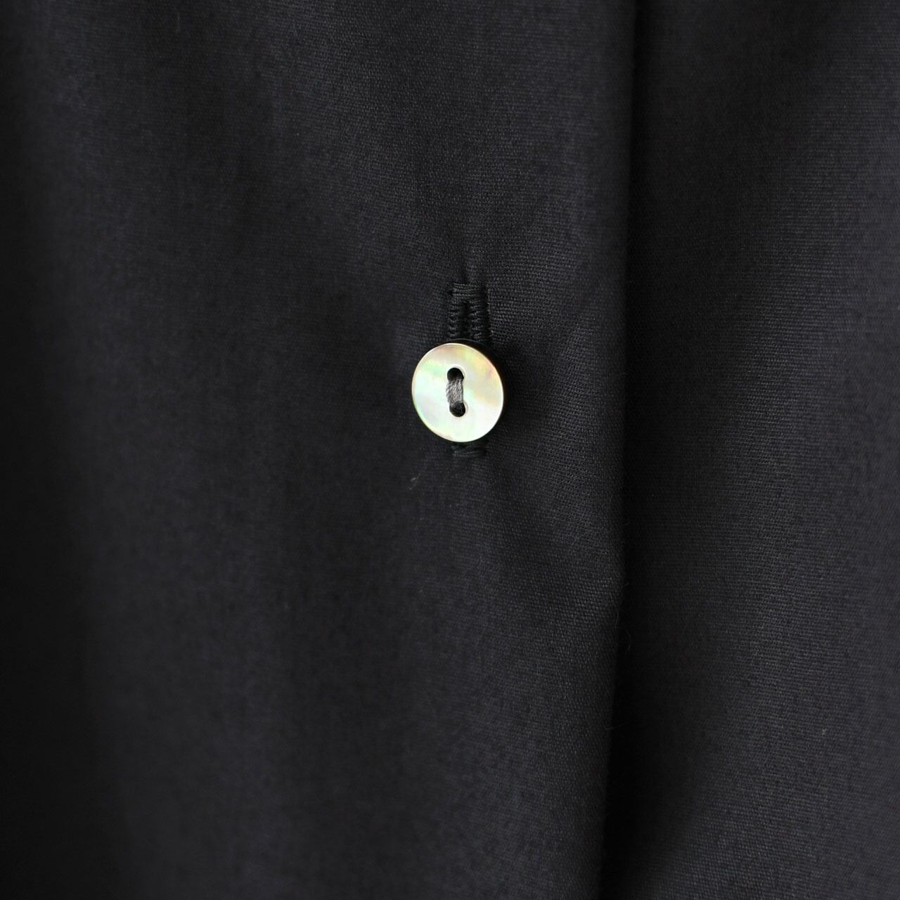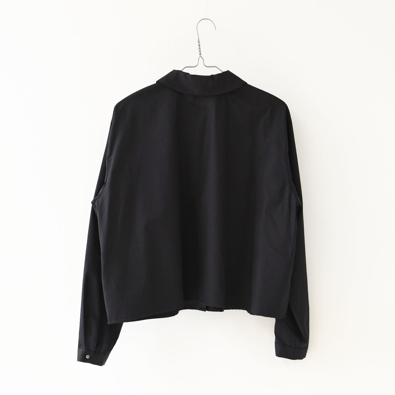 重ねたようなダブルカラーが印象的な、ミニマルで上品なシャツです。