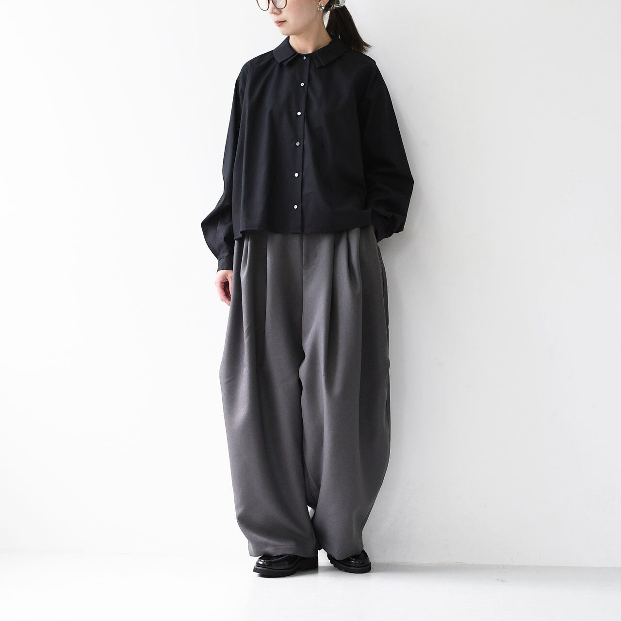 襟元の立体感が、シンプルなコーディネートにほんの少しの遊び心を添えてくれます。
