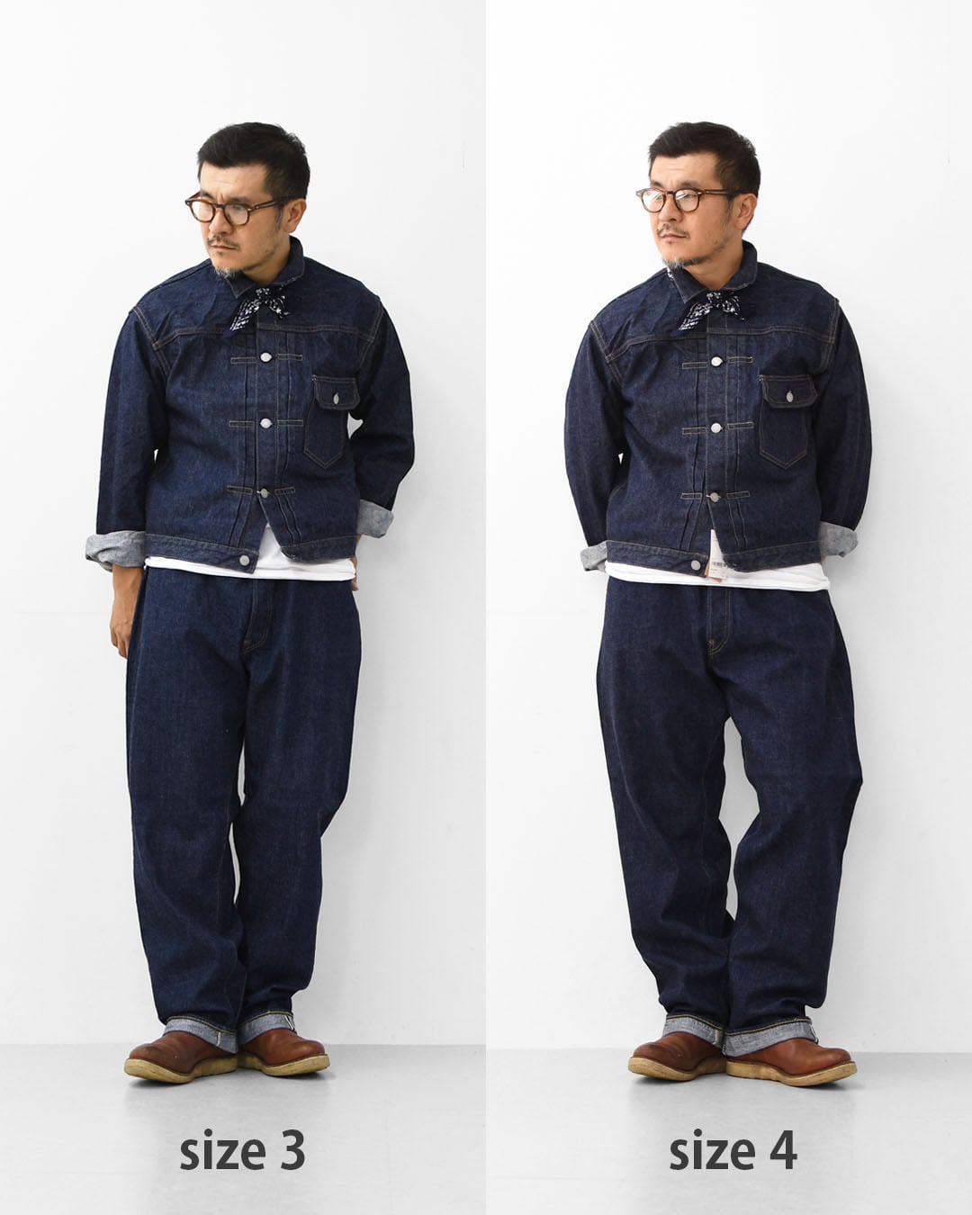 MEN'S モデルは身長167cmでサイズ1(S)と2(M)と3(L)と4(XL)を着用しています。