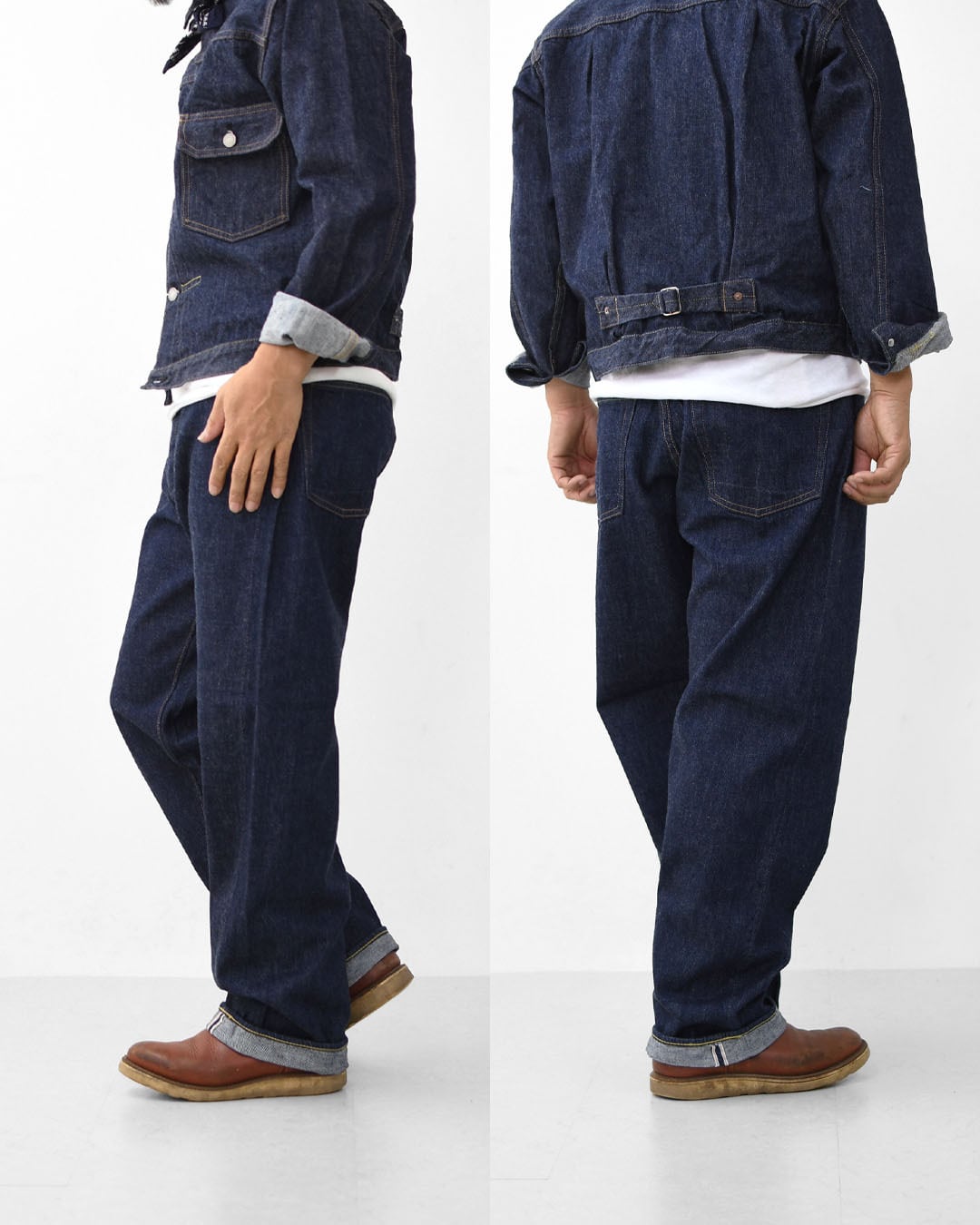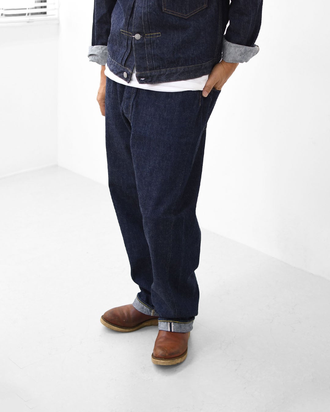 ブランドオリジナルの13.5ozデニムは、穿くほどに柔らかくなり、色落ちやアタリもじっくり育っていく本格仕様。