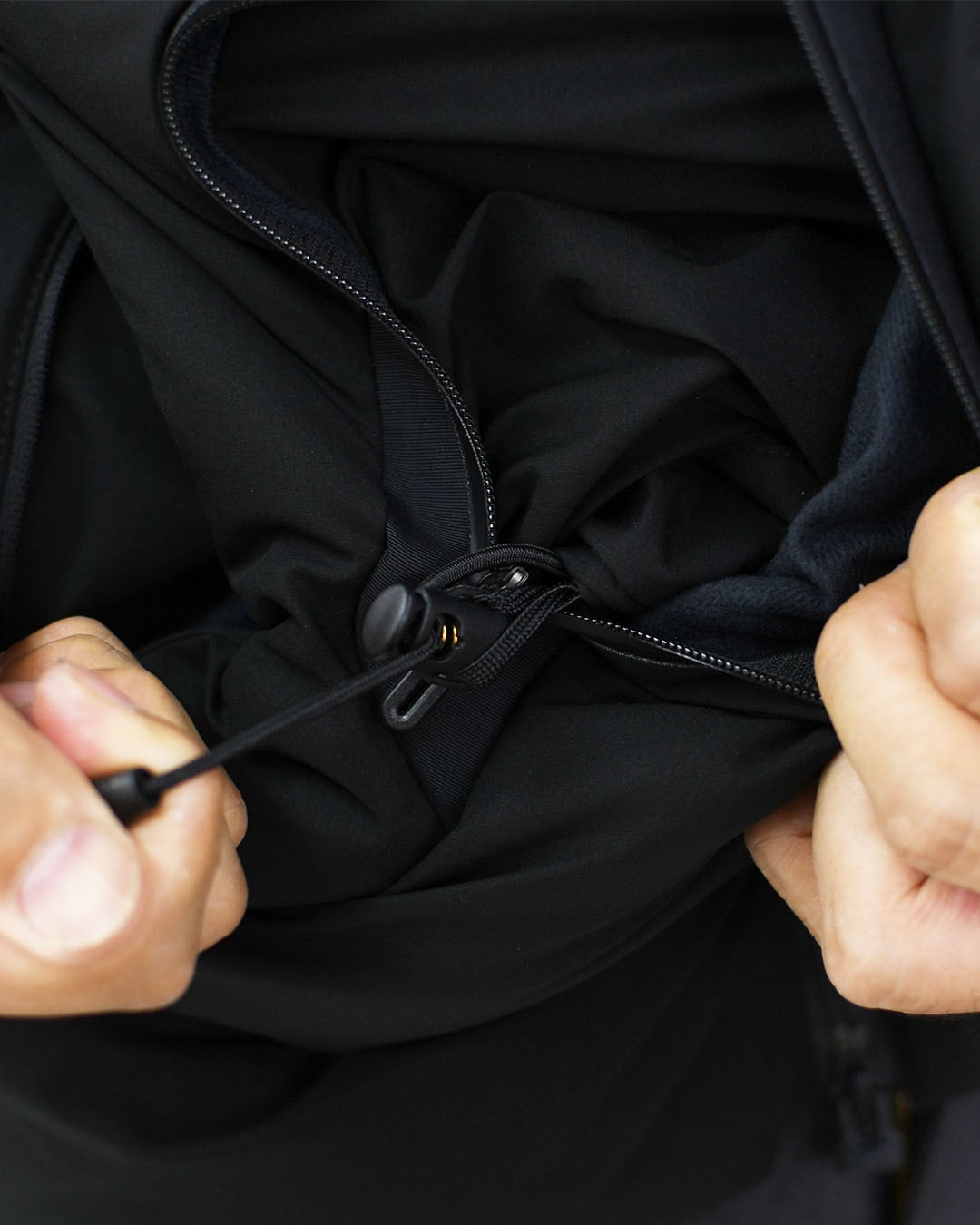フードには、雨や雪などの悪天候下での着用を考慮し、フードに水や雪だまりを防ぐパラフードシステムを搭載。
