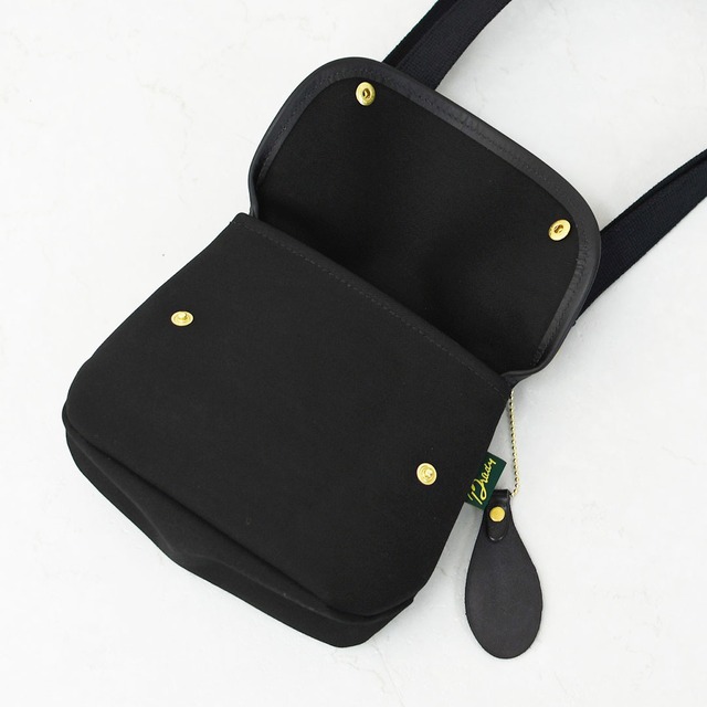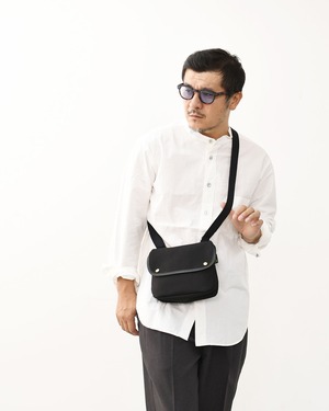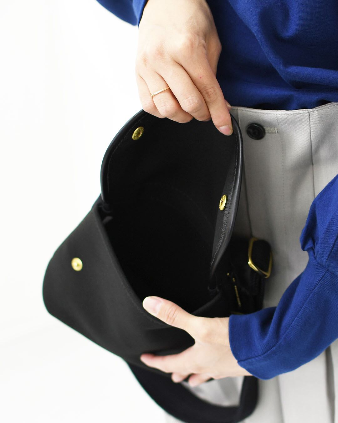 スナップボタンのみのミニマルな開閉仕様に、クラシックで実用的なフォルム。