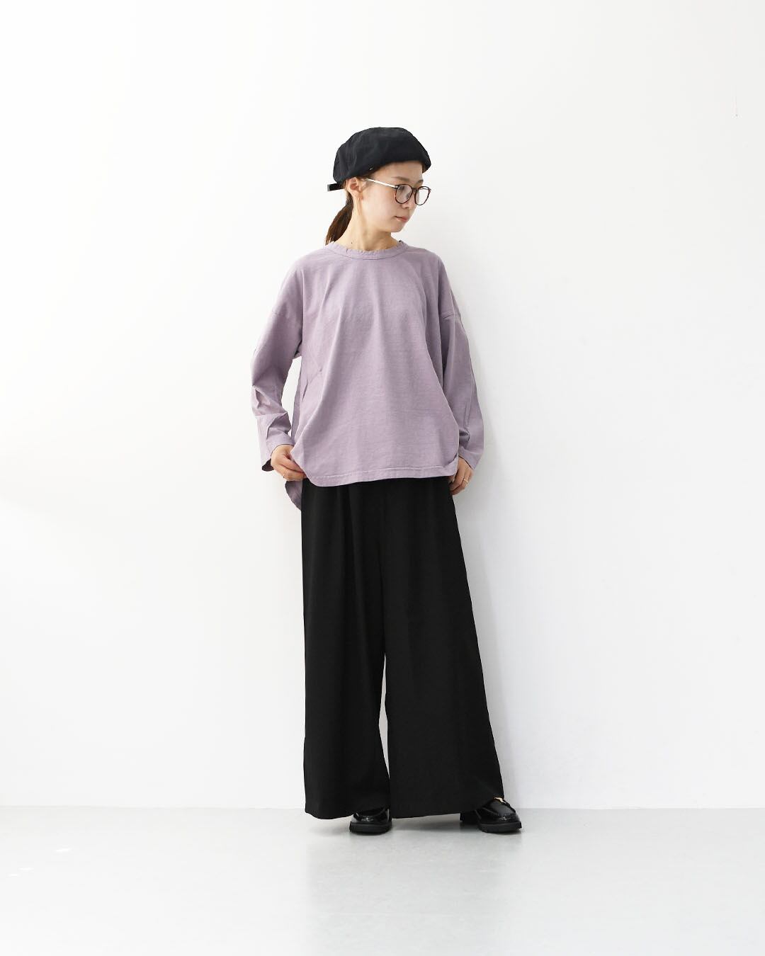 prit [プリット] 30/1リサイクルムラ糸天竺 フレアプルオーバー [P90663] コットンプルオーバー・コットンTシャツ・無地Tシャツ・長袖・綿・ロンT・ワイドシルエット・ゆったりシルエット・LADY'S [2025AW]