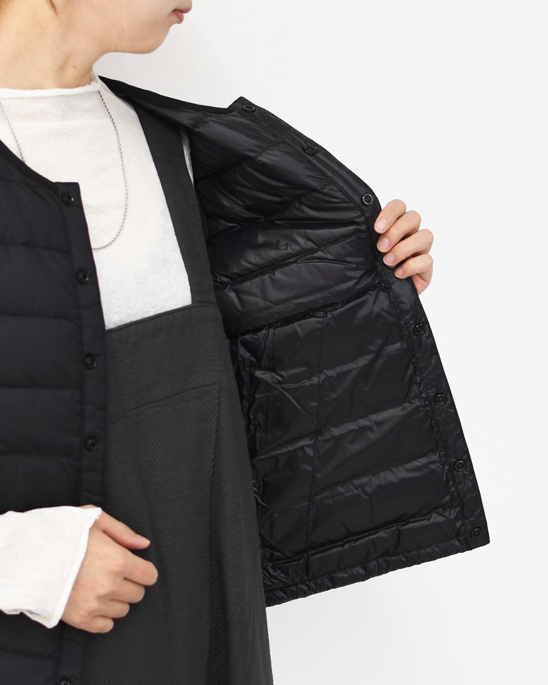 軽やかで着回しやすいクルーネックのインナーダウンベスト。