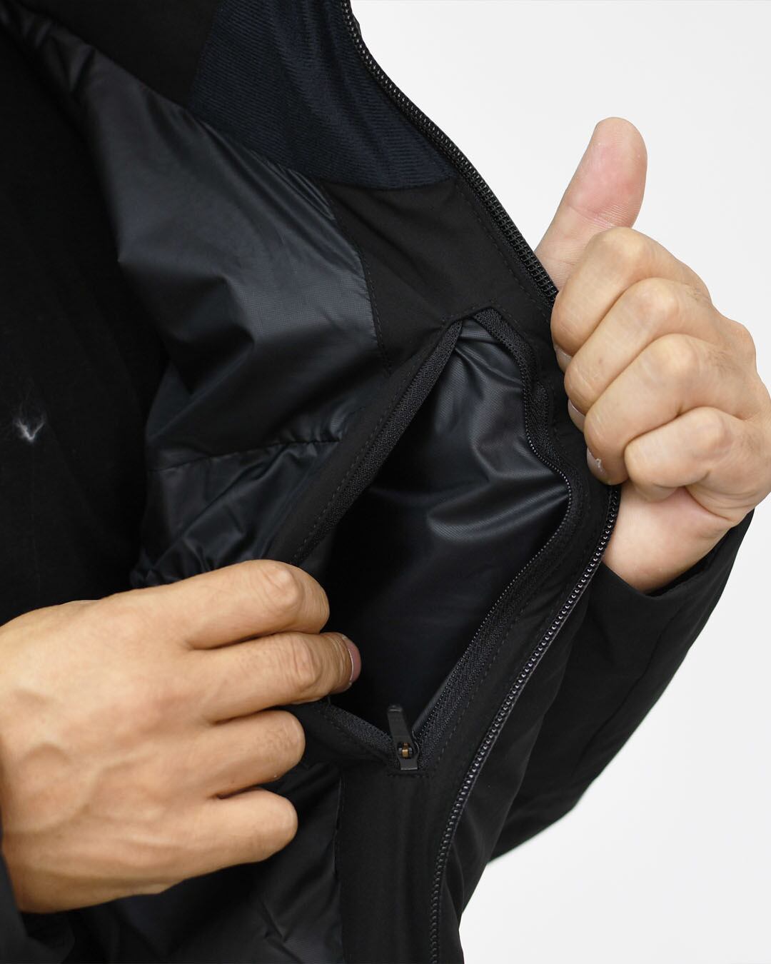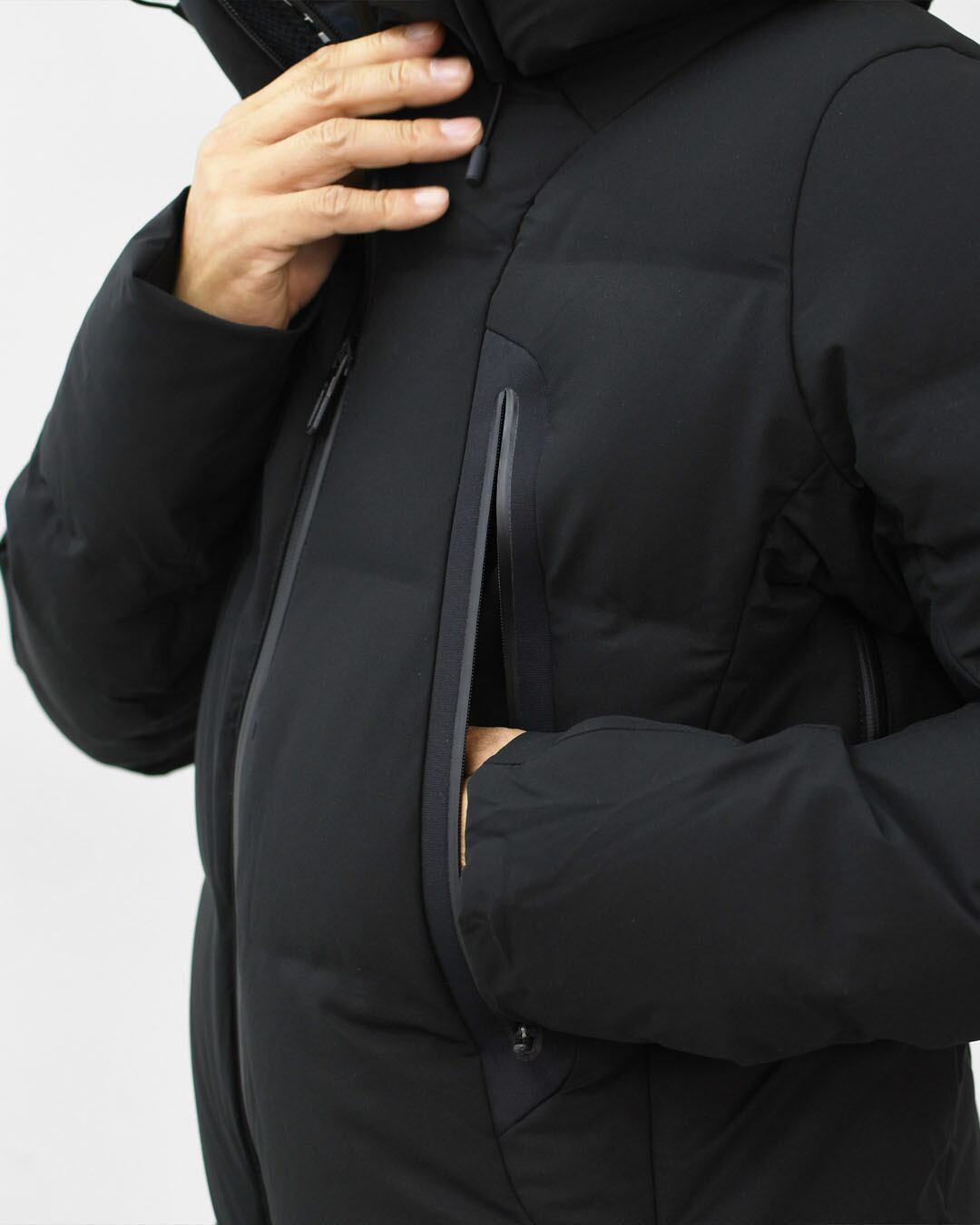 機能:耐水性 (20,000mm)/透湿性 (10,000g/㎡/24hr)(B-1法)/はっ水/防風/保温/パラフードシステム/デュアルジップベンチレーション/ダウンパストレーサビリティシステム