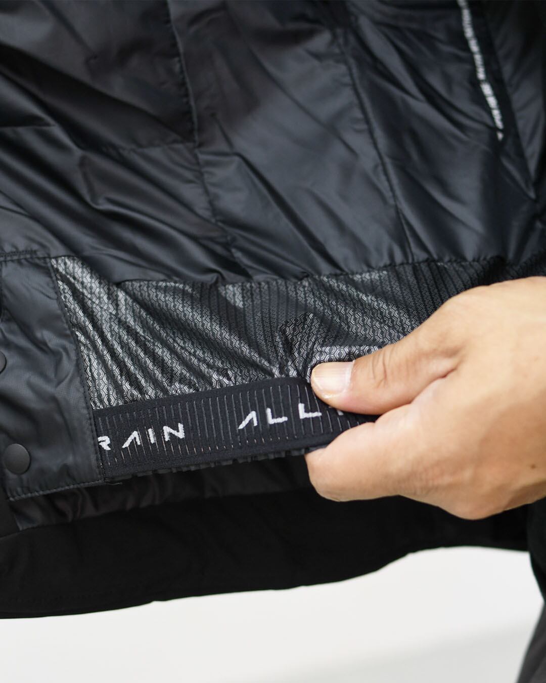 熱接着ノンキルト加工とシームテープ加工により、水分含浸を防ぎ、高い耐水性を実現。