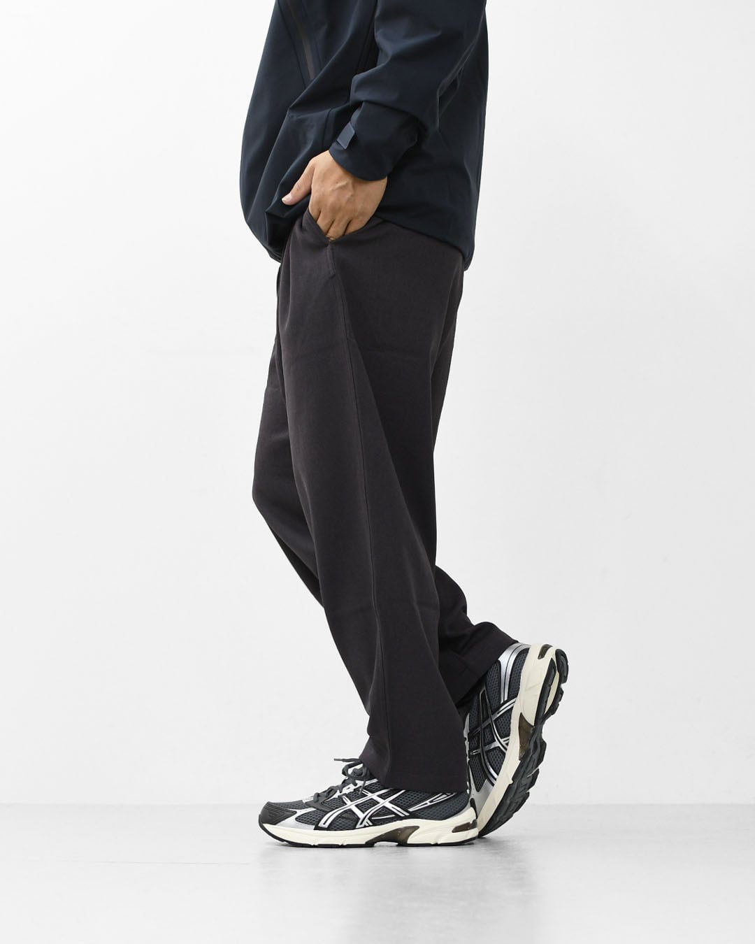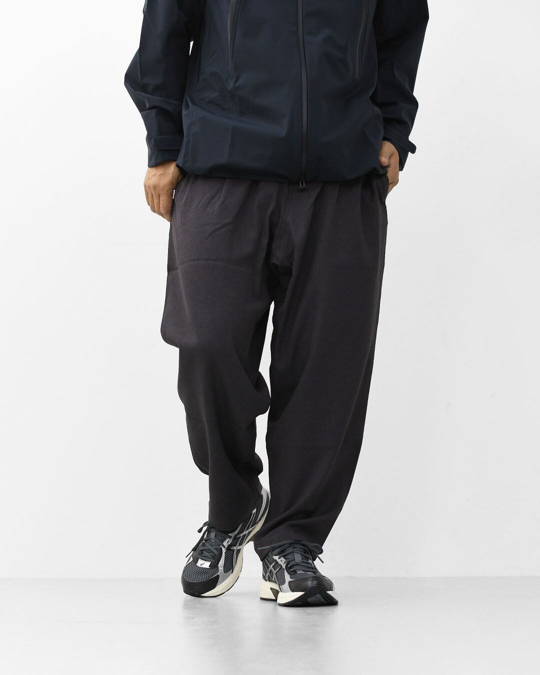 ワイドシルエットながら裾にかけてテーパードを効かせ、ゆとりとすっきり感を両立。