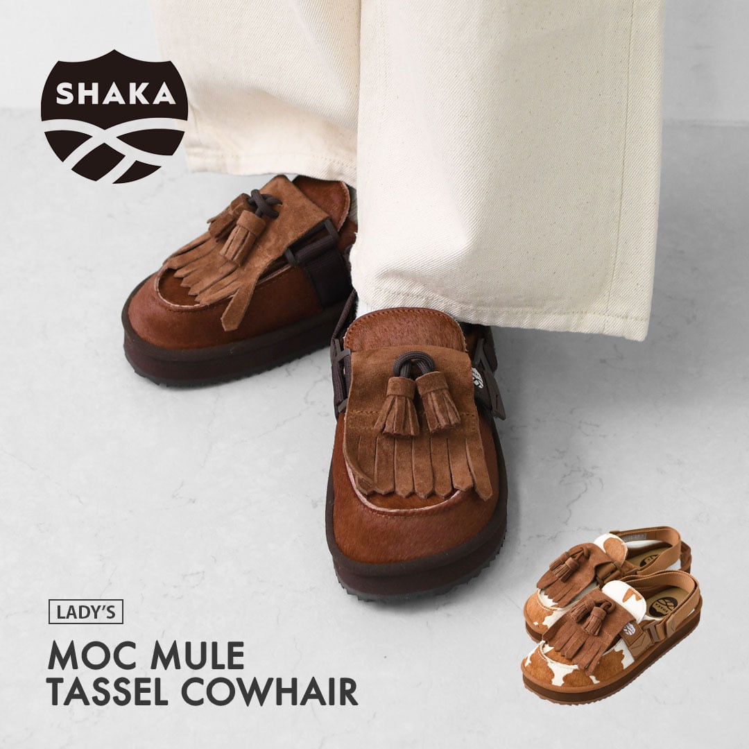 SHAKA [シャカ] MOC MULE TASSEL COWHAIR [SK-339] キルトタッセル付きミュールサンダル・ミュールサンダル・ミュール・カウヘア・牛革・タッセル付き・LADY'S [2025AW]