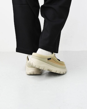 旬なモカシンブーツをベースに、デザインと機能性、トレンド感を融合させた一足です。