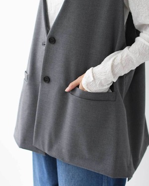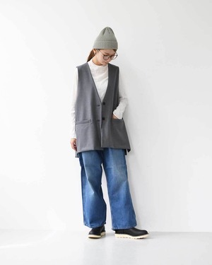 mizuiro ind [ミズイロ インド] deep V neck wide vest [3-230108] ディープVネックワイドベスト・ベスト・Vネックベスト・ワイドシルエット・ゆったりシルエット・LADY'S [2025AW]