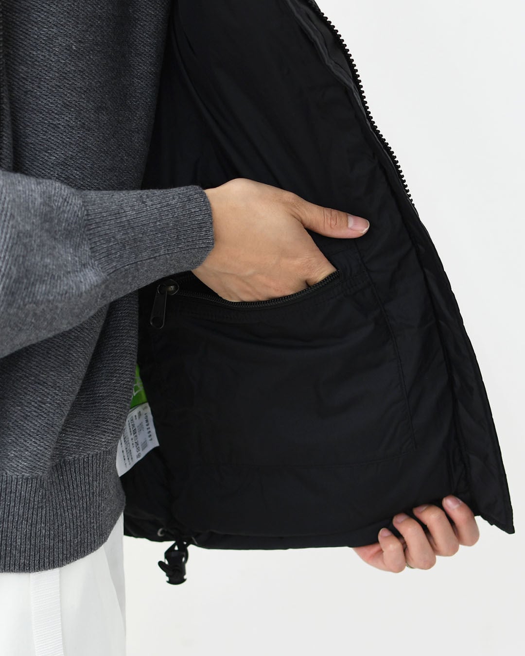 素材 <表地>40D Recycled Nylon Ripstop(ナイロン100%)<中わた>GreenRecycled CLEANDOWN(ダウン80%、フェザー20%)<肩部分・裏地>Recycled Nylon Cloth(ナイロン100%)