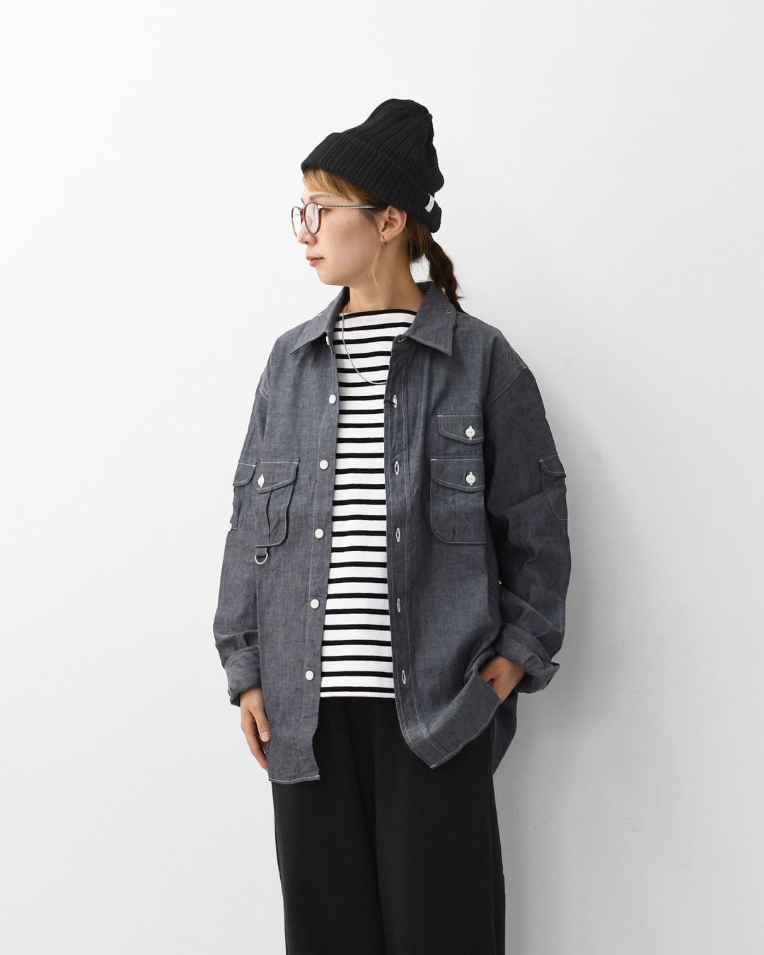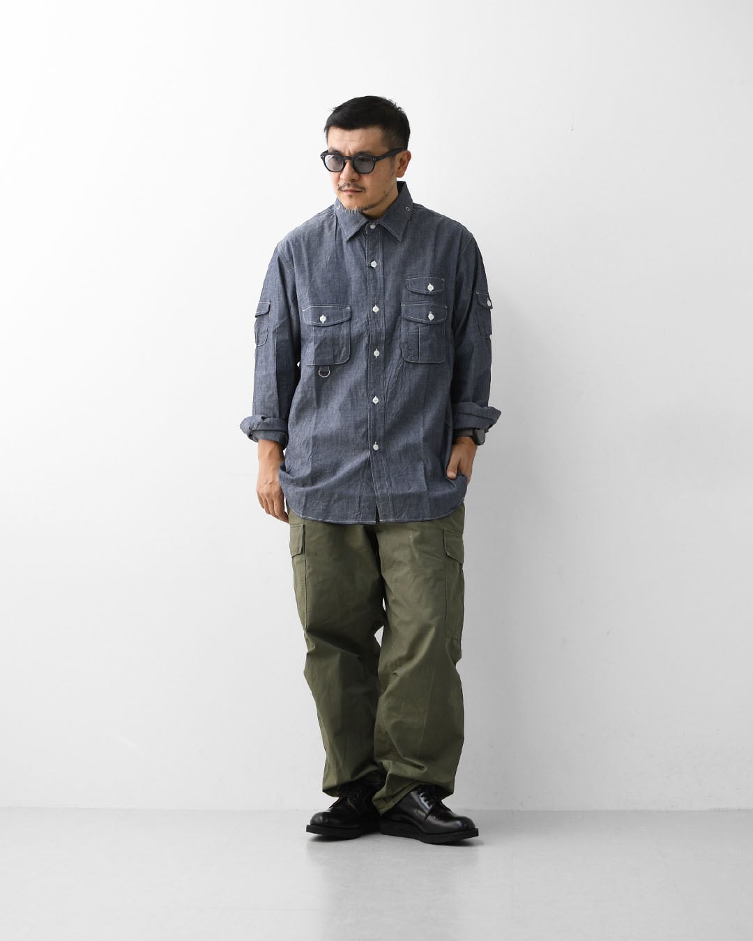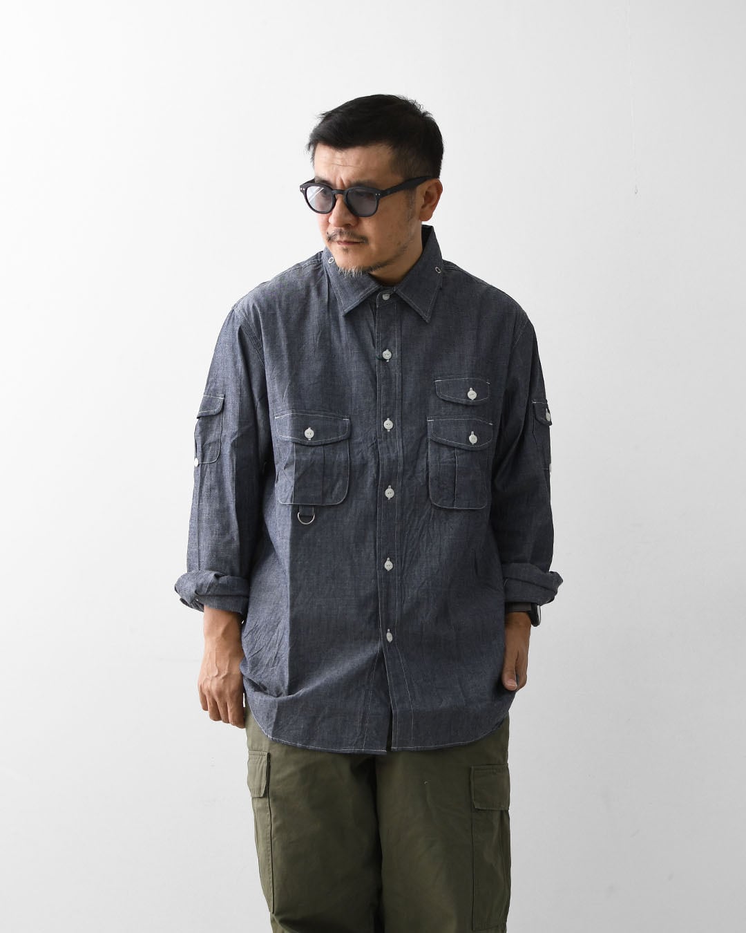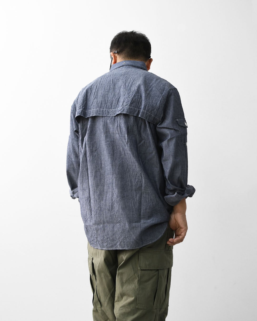 アウトドアでは定番のコットンシャンブレー素材は、シーズンを超えて釣行からアウトドア、タウンユースにとシーン問わず活躍する一着です。