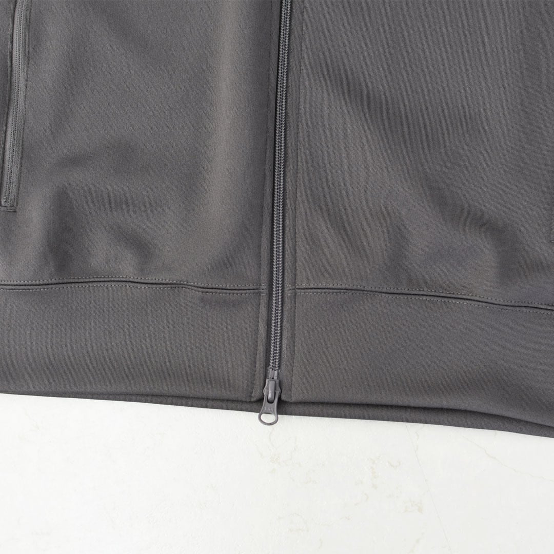 伸びやかでスムースな質感が魅力のポリエステルジャージーを用いたトレーナージャケット。