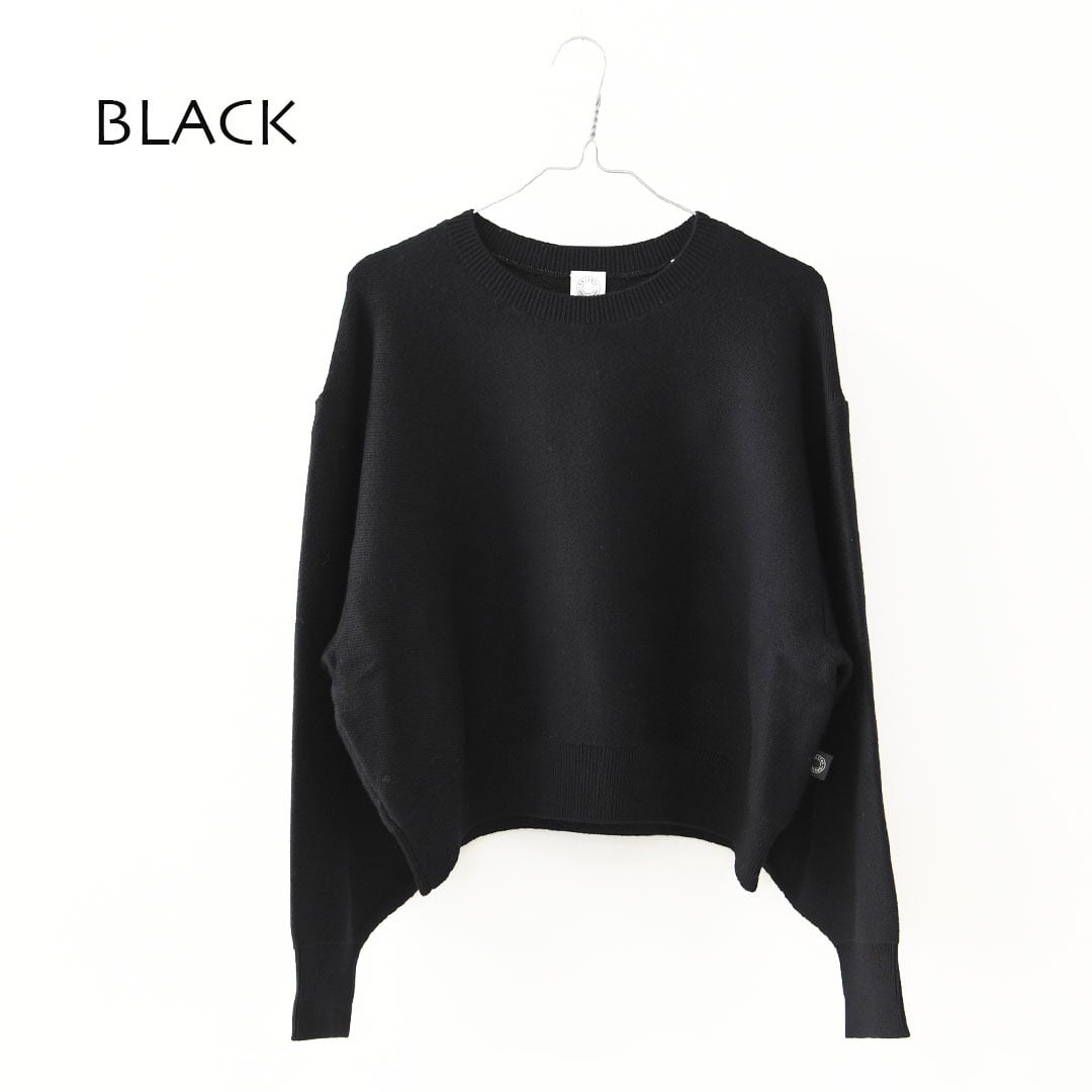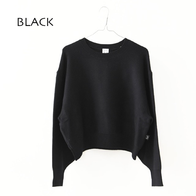 ラウンドネックとジャストレングスの着丈、ドロップショルダーのバランスで、自然に女性らしいシルエットを演出。