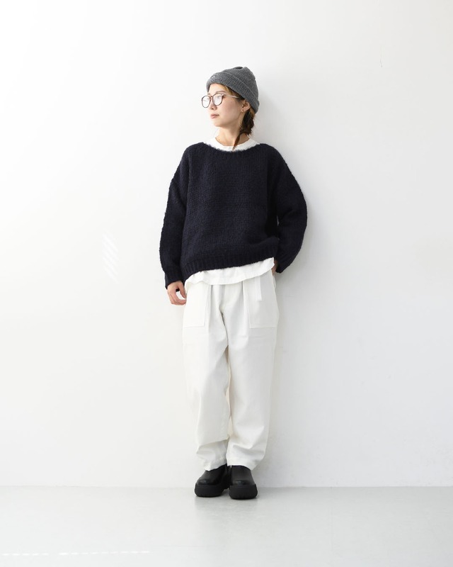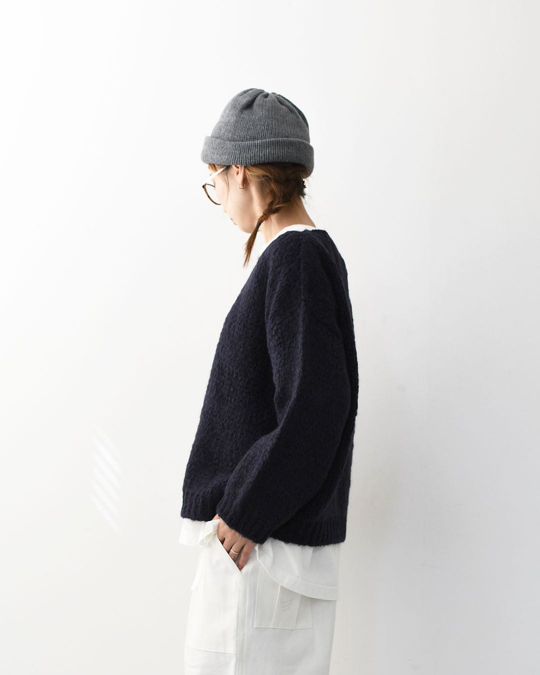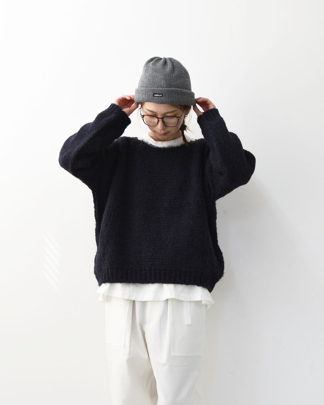 ふんわりとしたモヘヤ混の素材感が魅力のニットプルオーバー。