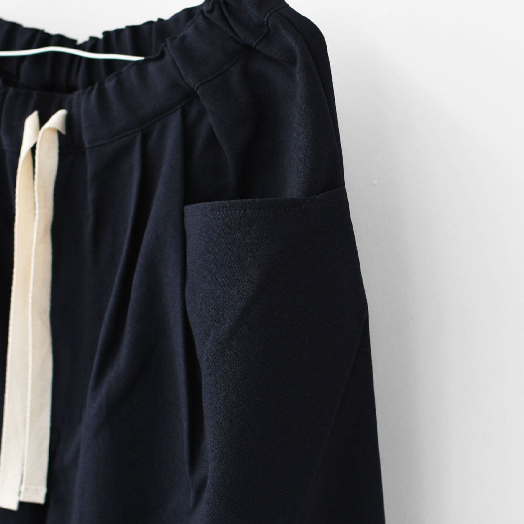 深めのタックとラウンドポケットが、シンプルながらもこだわりを感じさせるポイントです。