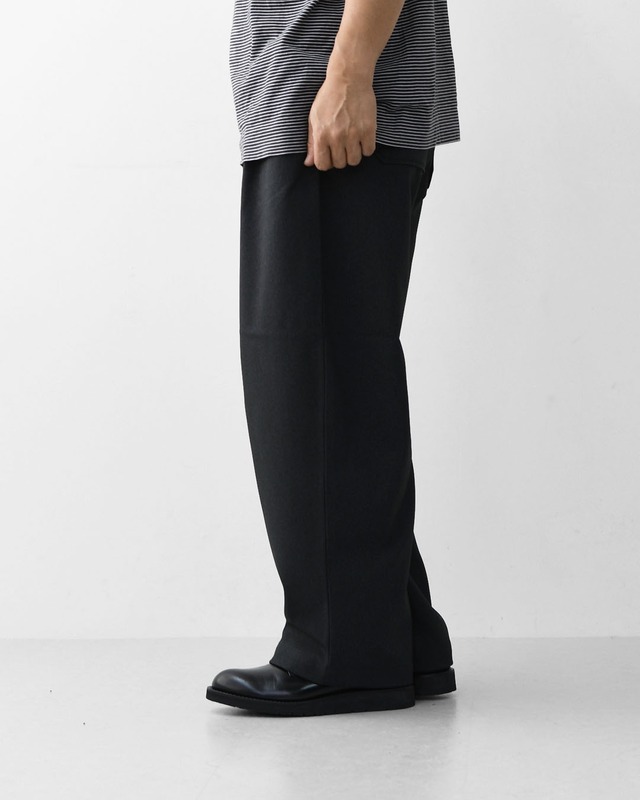外脇に丸みをもたせたワイドテーパードラインが、リラックス感と程よいモード感を両立します。