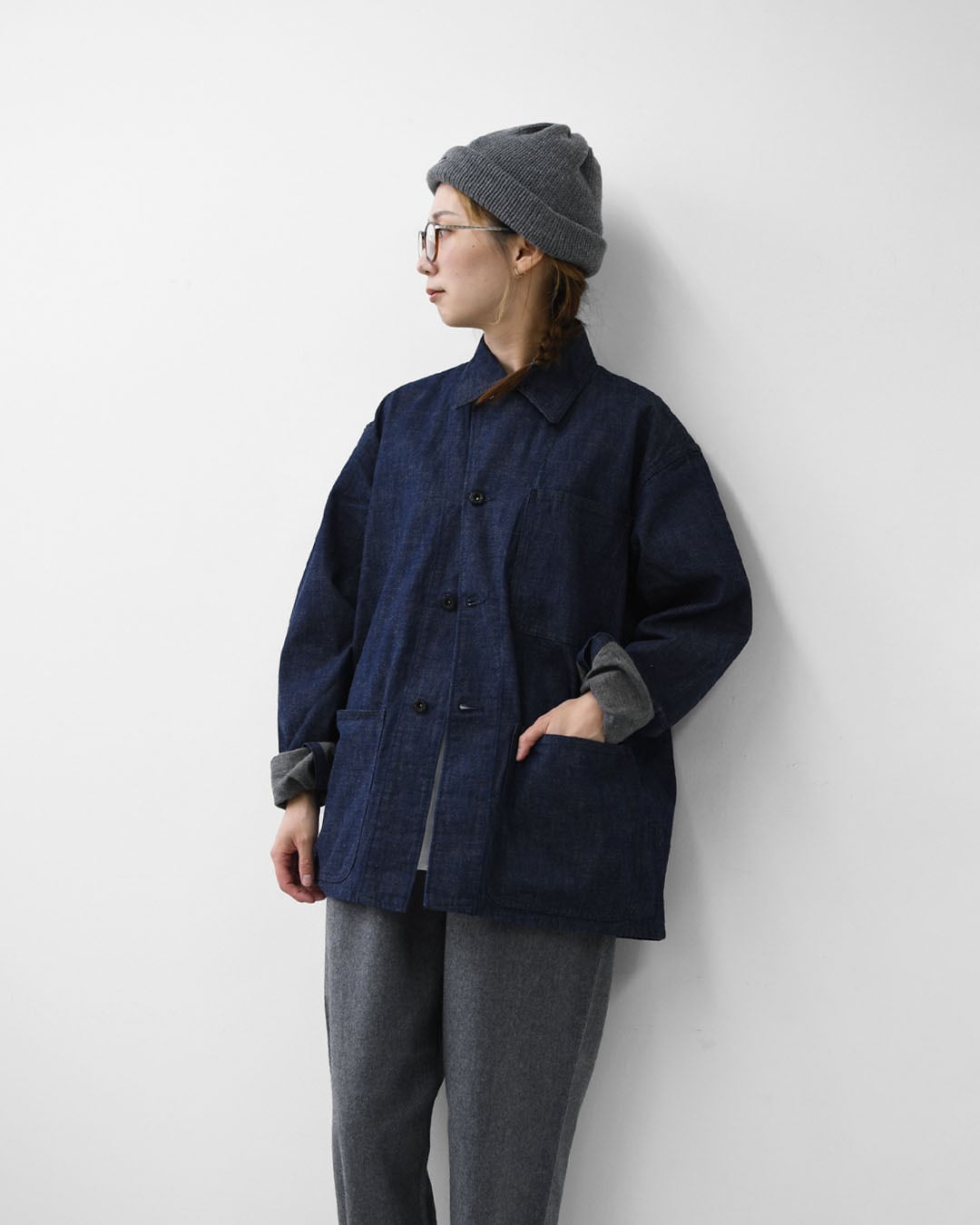 しっかりとしたデニム生地が体に馴染み、着るほどに風合いを増していきます。