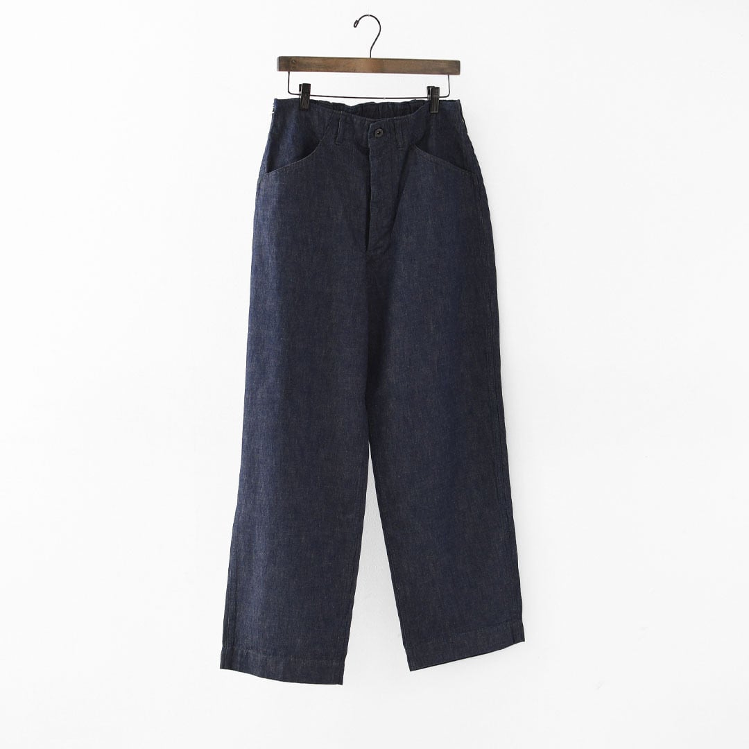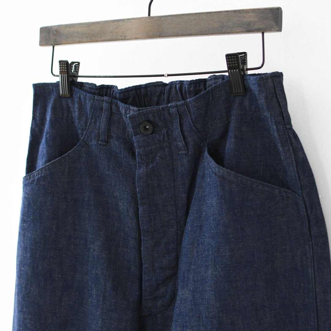 インディゴ染めのコットン100%デニムを使用し、履くほどに体に馴染む素材感が魅力です。