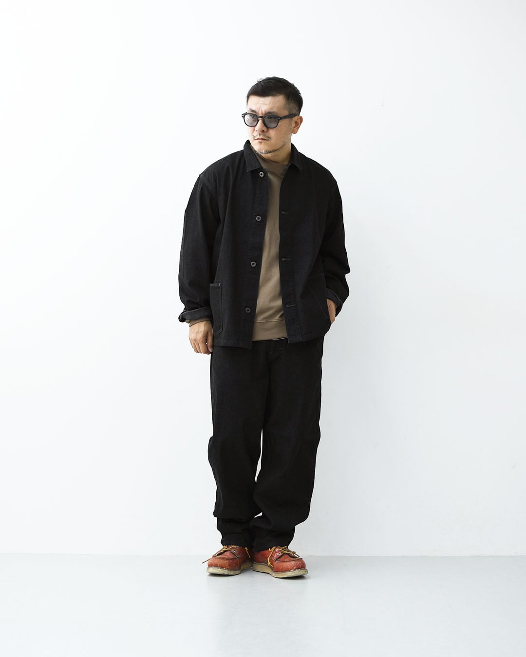 コットン100%のブラックデニムは、ワーキング感のある10oz生地を使用しており、