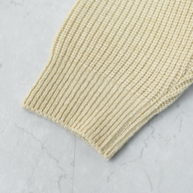 上質なウール糸をふっくらと編み立てた、あぜ編みのクルーネックニット。