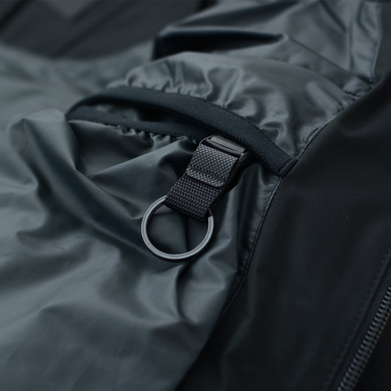 両胸の内側にポケットを配置し、取り外し式のキーチェーンを追加して収納性を確保。フロントジッパー部分に採用されたデュアルジップベンチレーションは、2列のジッパーとその間に配置されたメッシュ生地により衣服内に外気を取り込み、ジャケット内にこもりやすい不快な熱や湿気を逃がすことが可能。
