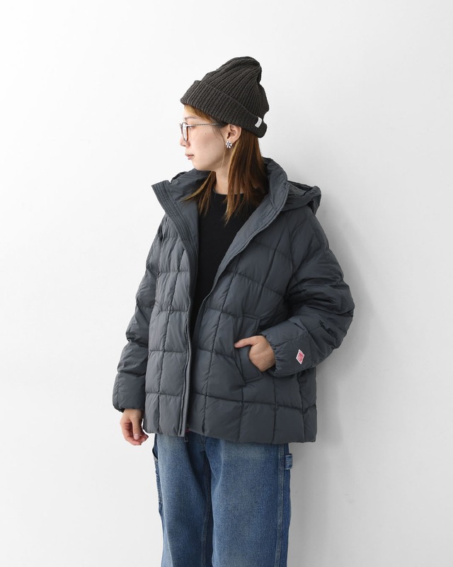 軽量で薄手のナイロンタフタを使用し、程よいロフト感のスクエア型ダウンステッチが立体感を演出します。