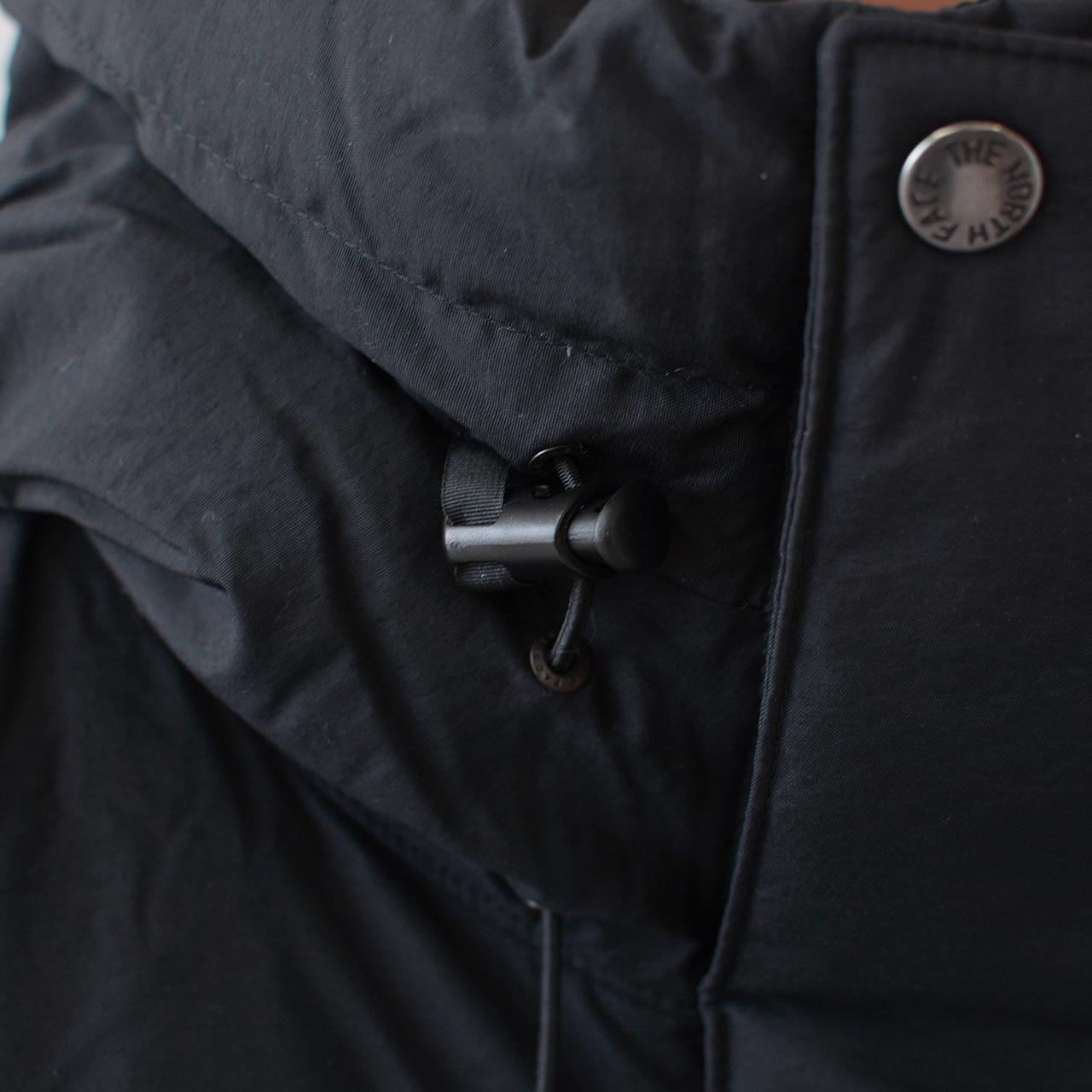 ダウンをたっぷりと封入したフードは頭部をしっかり覆うことができる大きめの設計で、ドローコードで調節が可能です。