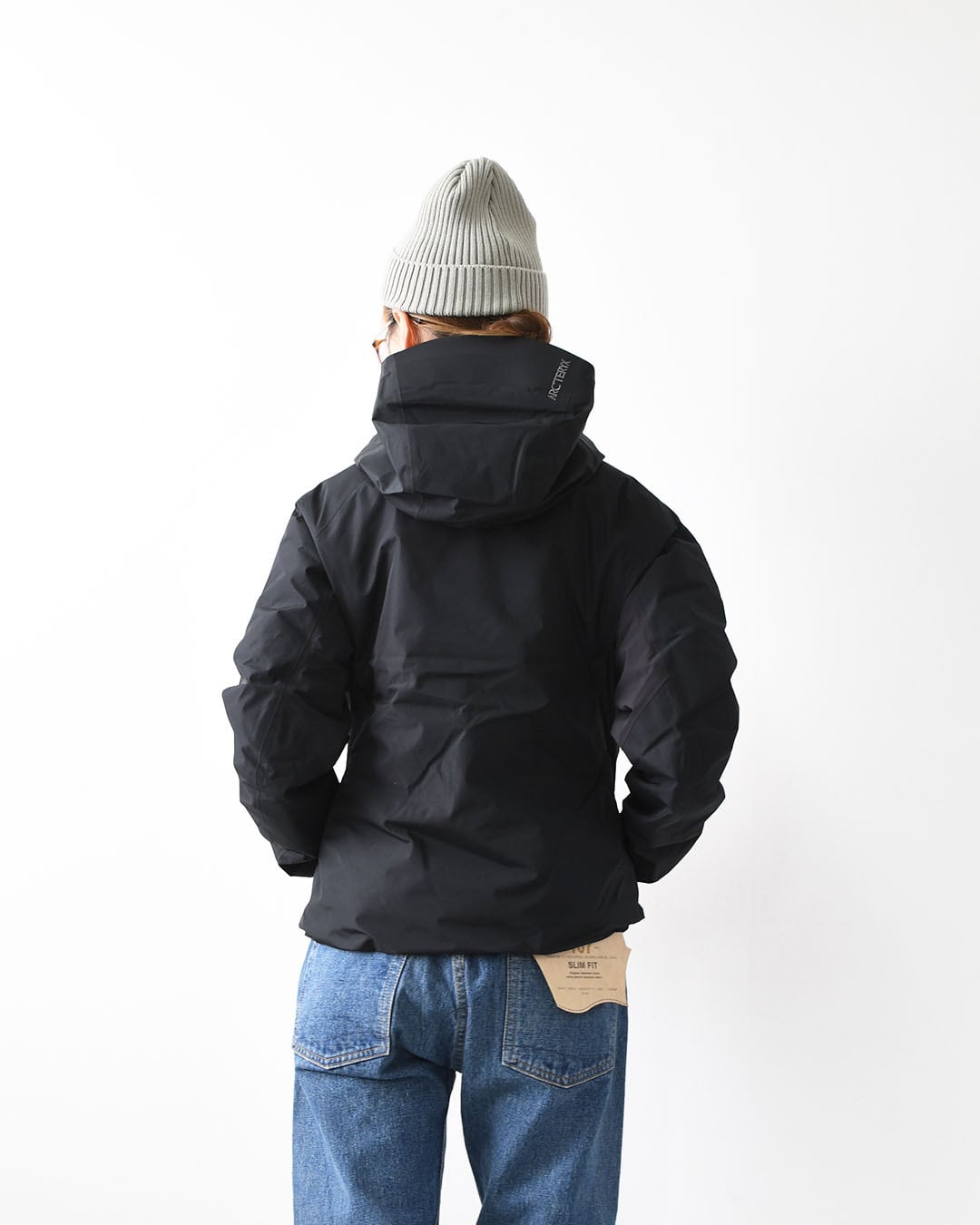 表地にはアークテリクス独自の高機能素材「GORE-TEX INFINIUM」を採用し、風や小雨をしっかりブロック。