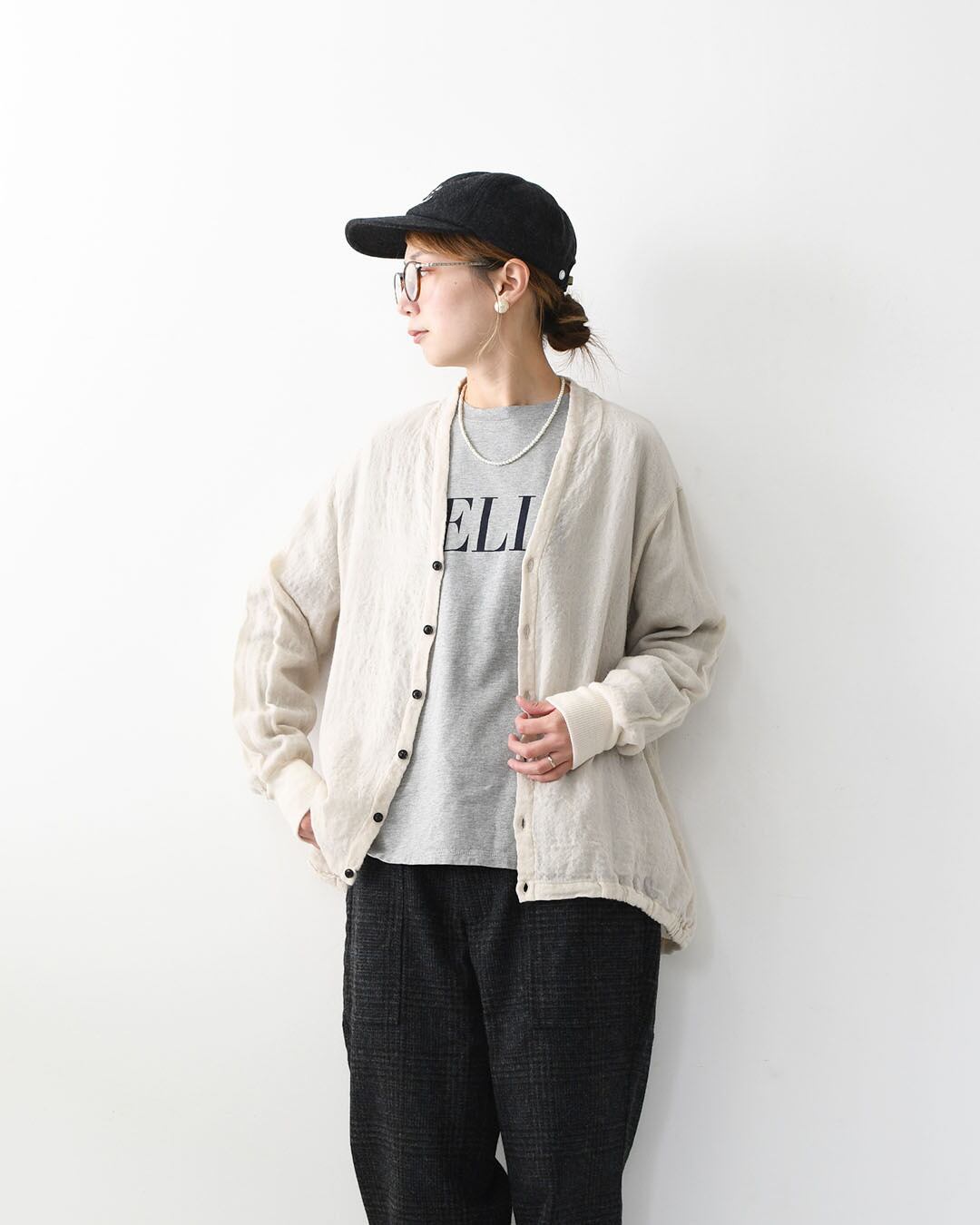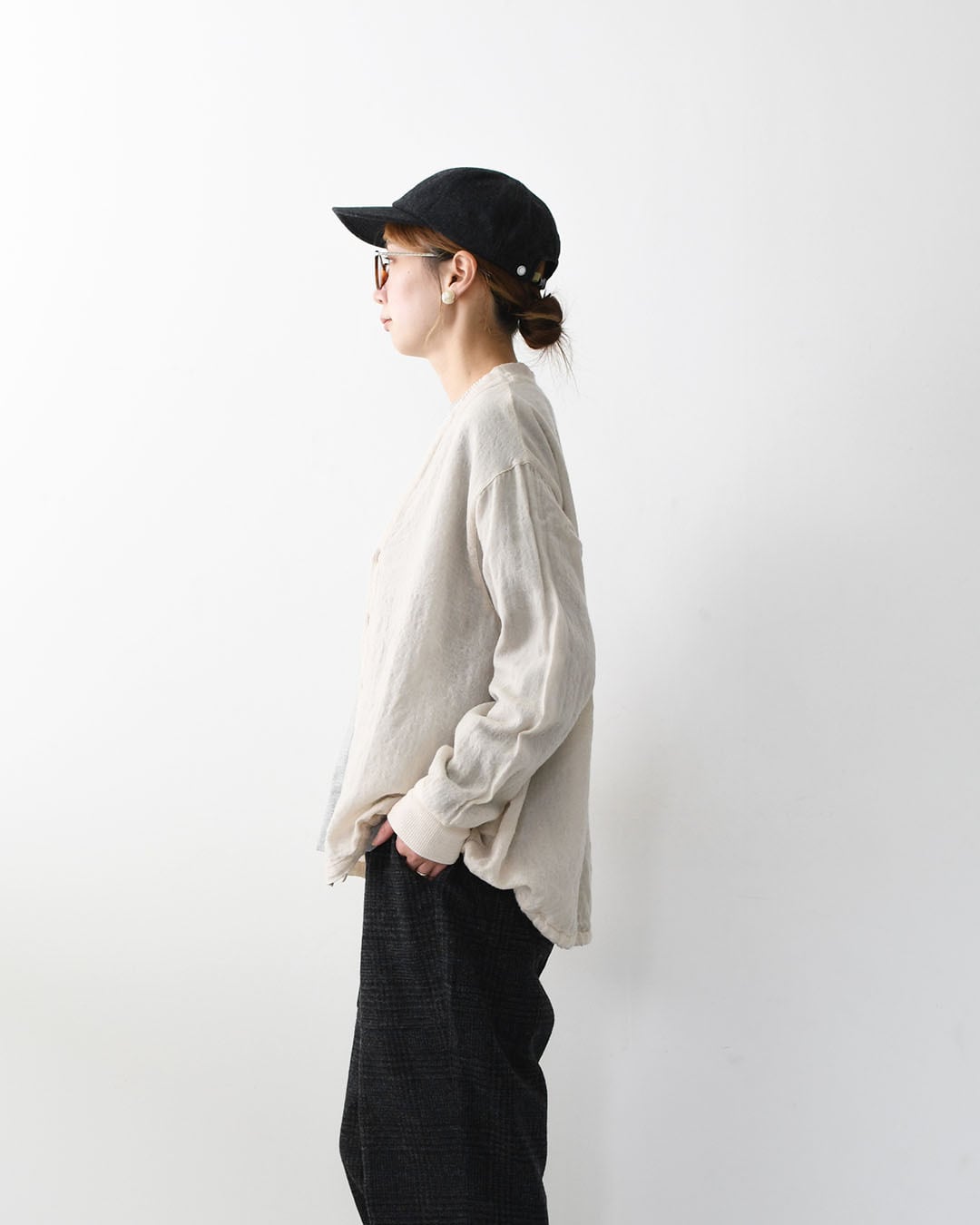 ボタンを留めてプルオーバーのように着ても、開けて羽織ってもバランスの取りやすいデザイン。