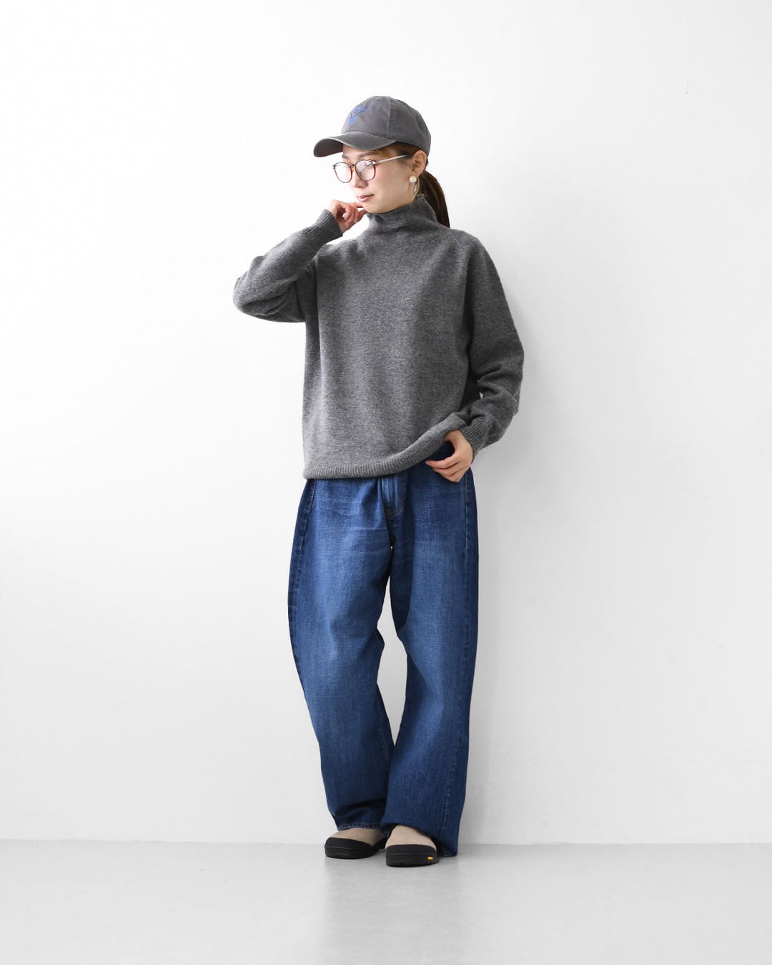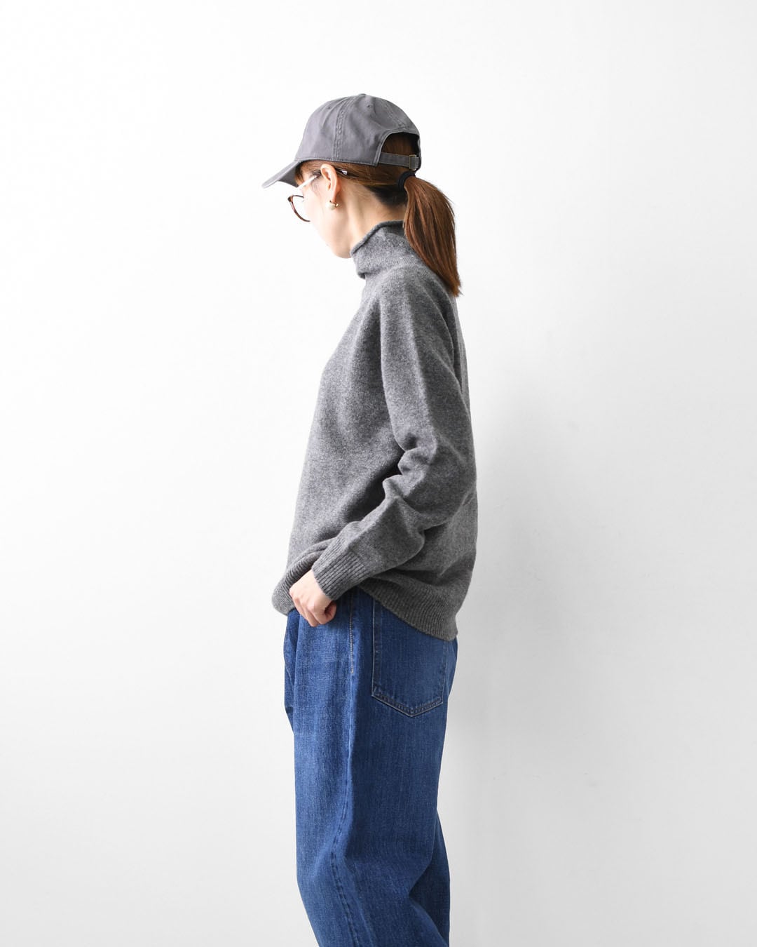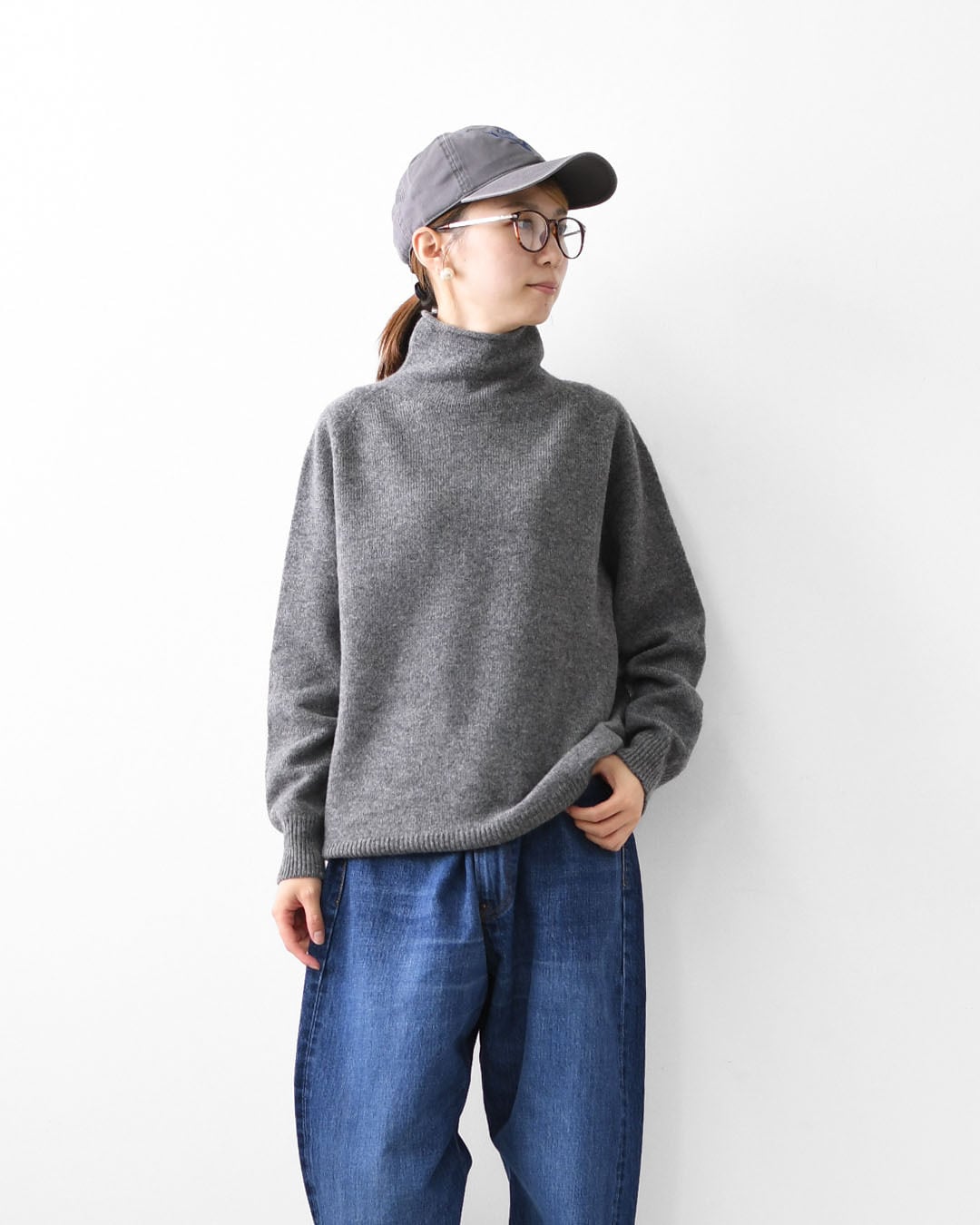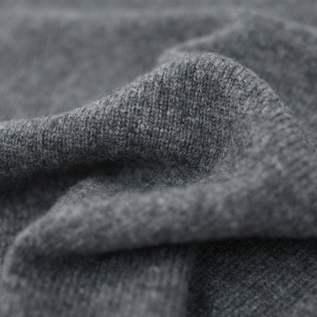 ベーシックなデザインだからこそ、素材の質感と編み地の表情が際立つ一枚。