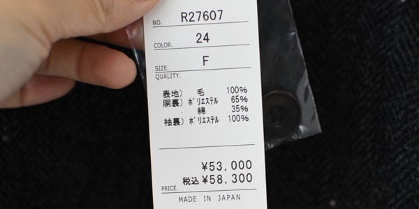 素材 表地)毛100% 胴裏)ポリエステル65% 綿35% 袖裏)ポリエステル100%
