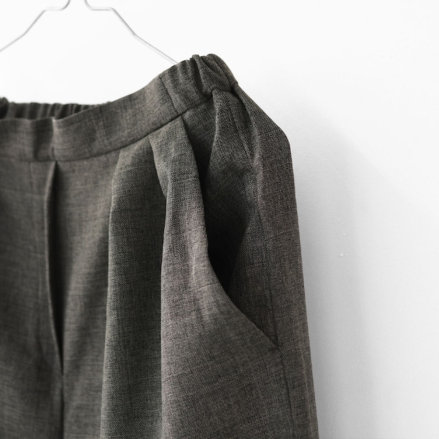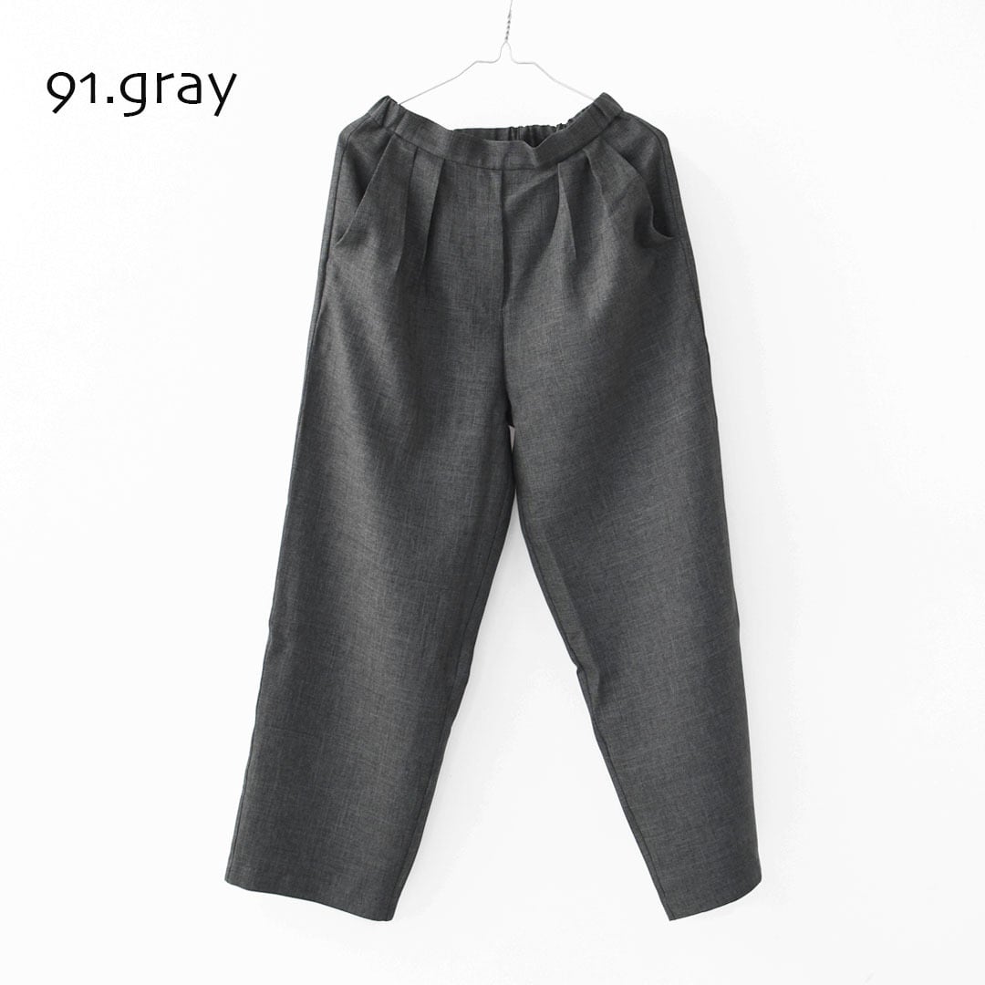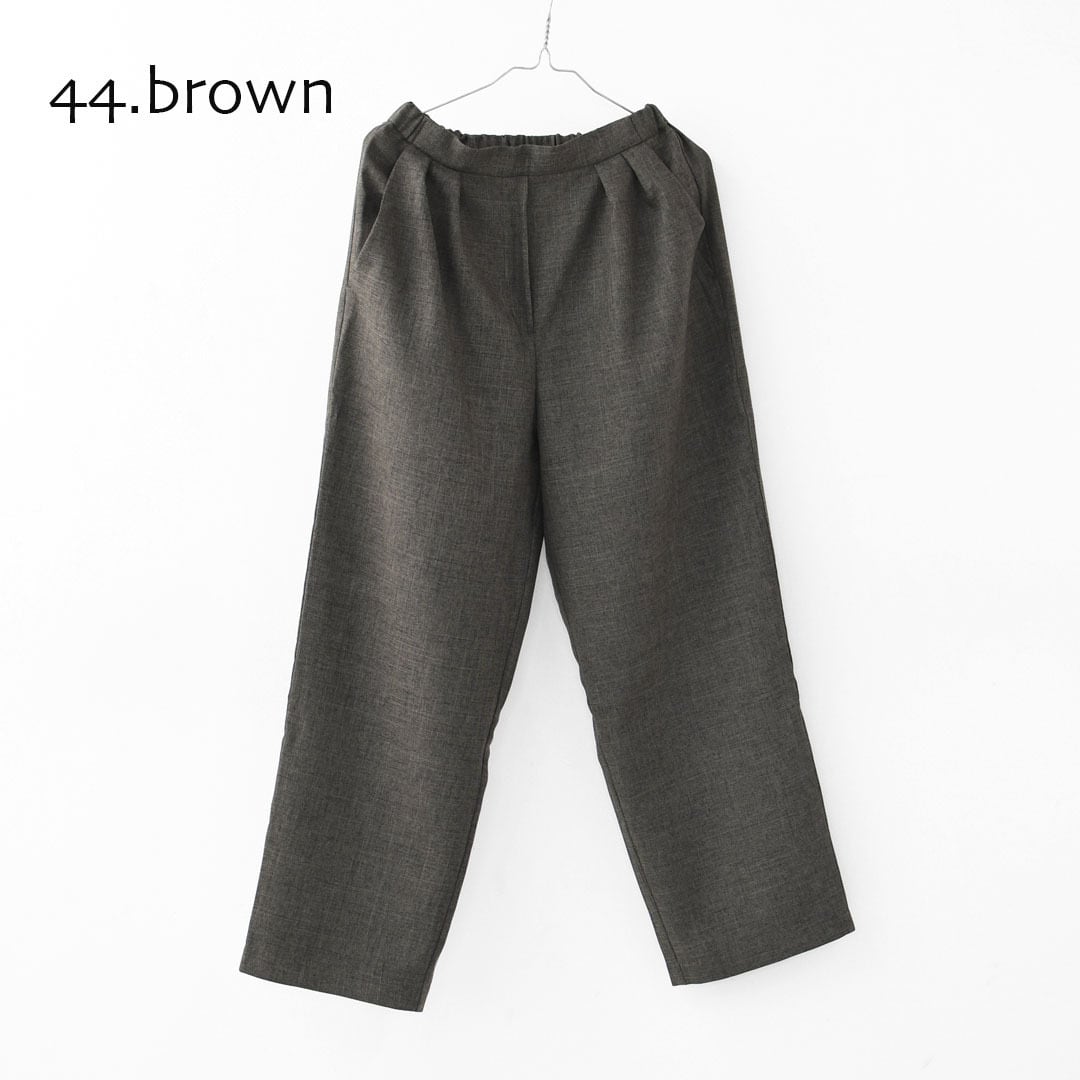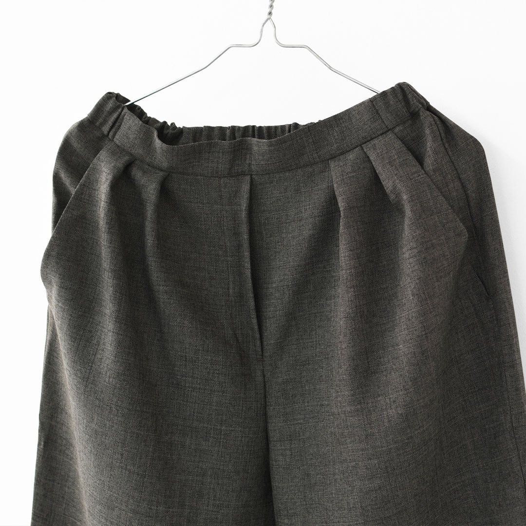 ウールツイードのような風合いを持たせた、表情豊かなポリエステル素材のスラックスパンツ。