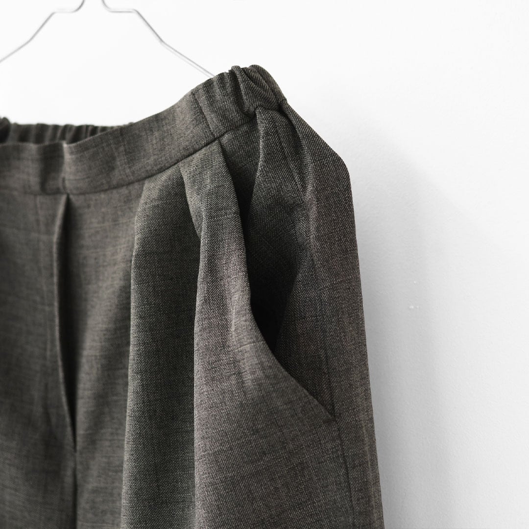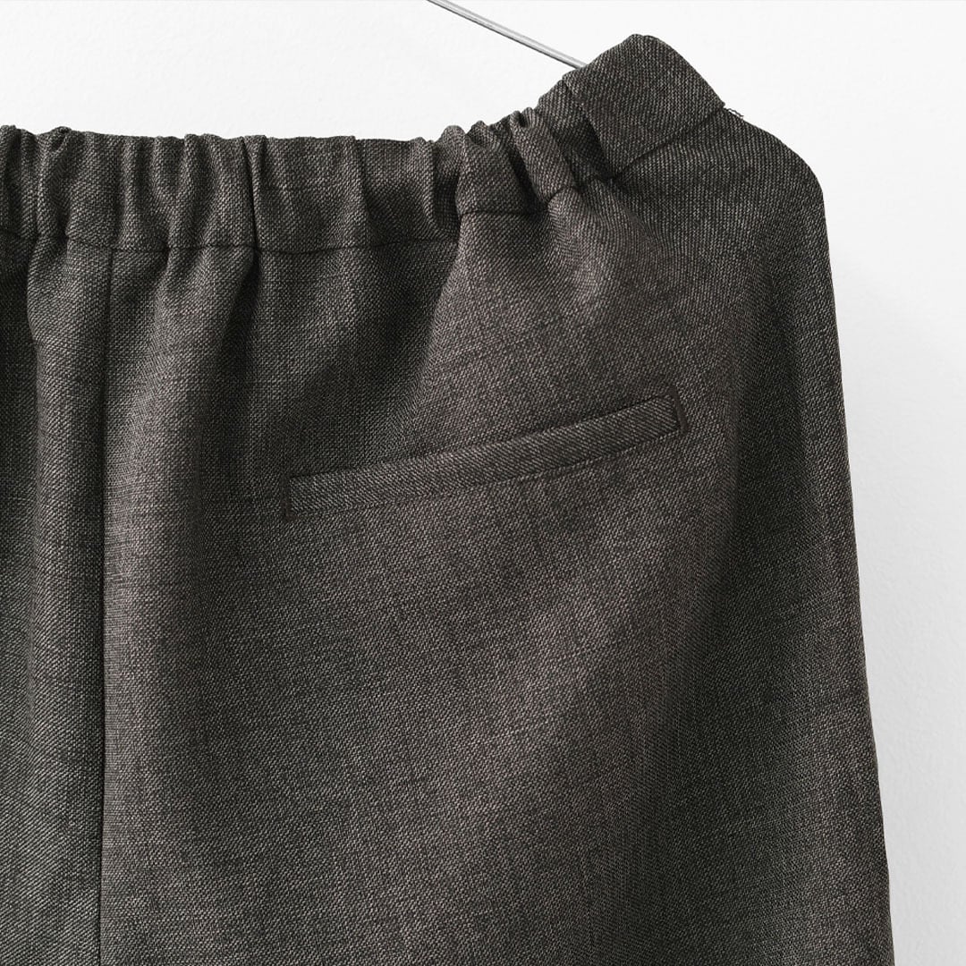 ウエストは後ろゴム仕様で、見た目のきちんと感とリラックスした穿き心地を両立。
