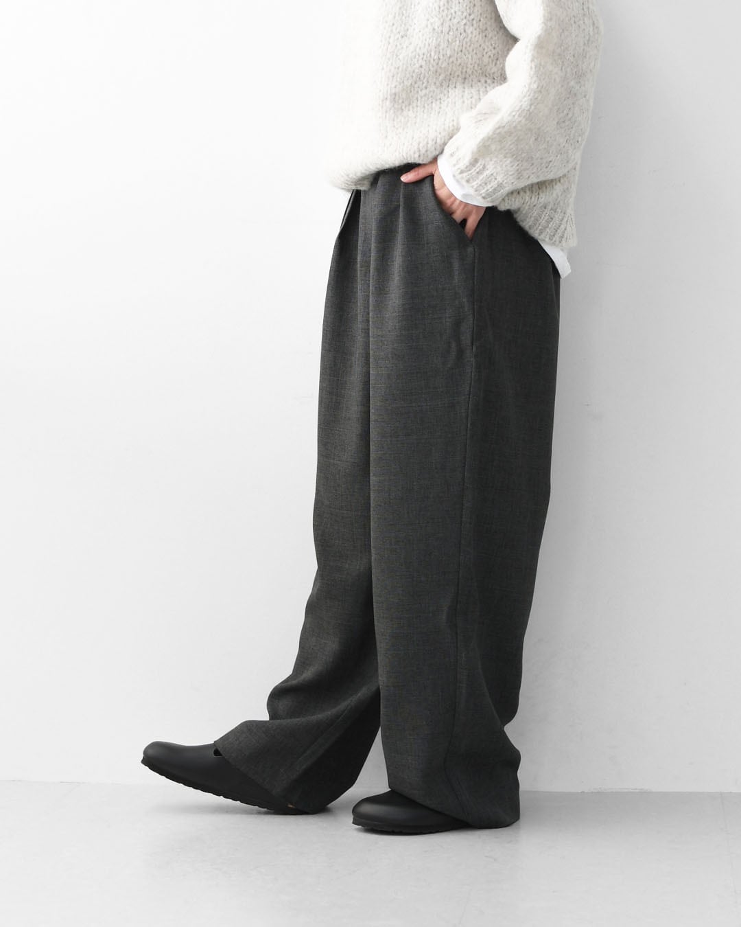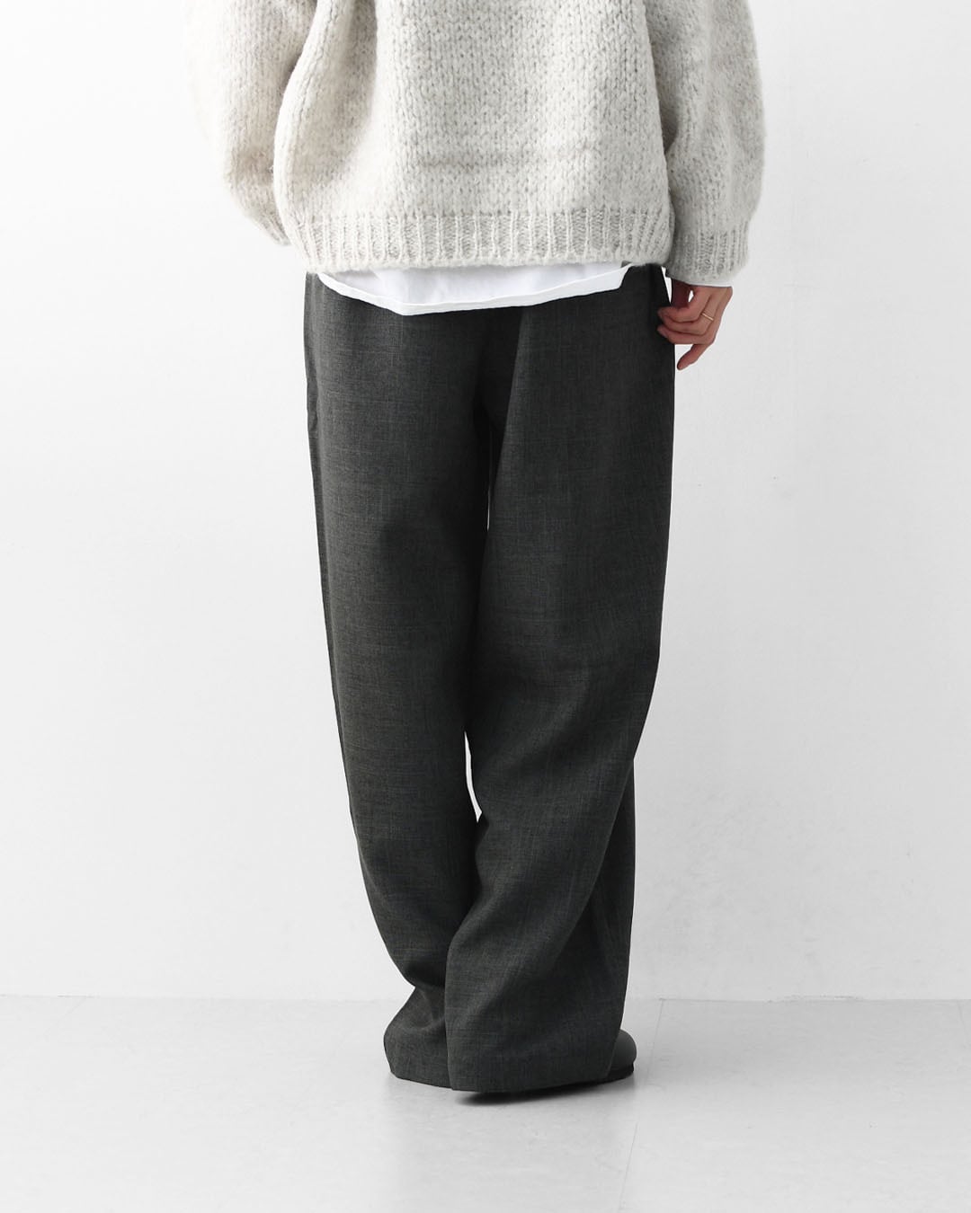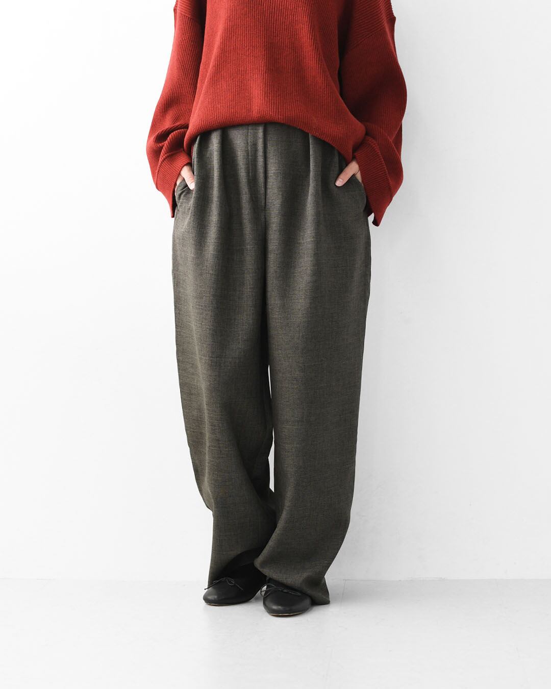 ほどよい厚みと美しい落ち感があり、穿くだけでシーズンらしい空気感をまとえる一本です。