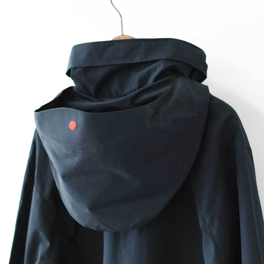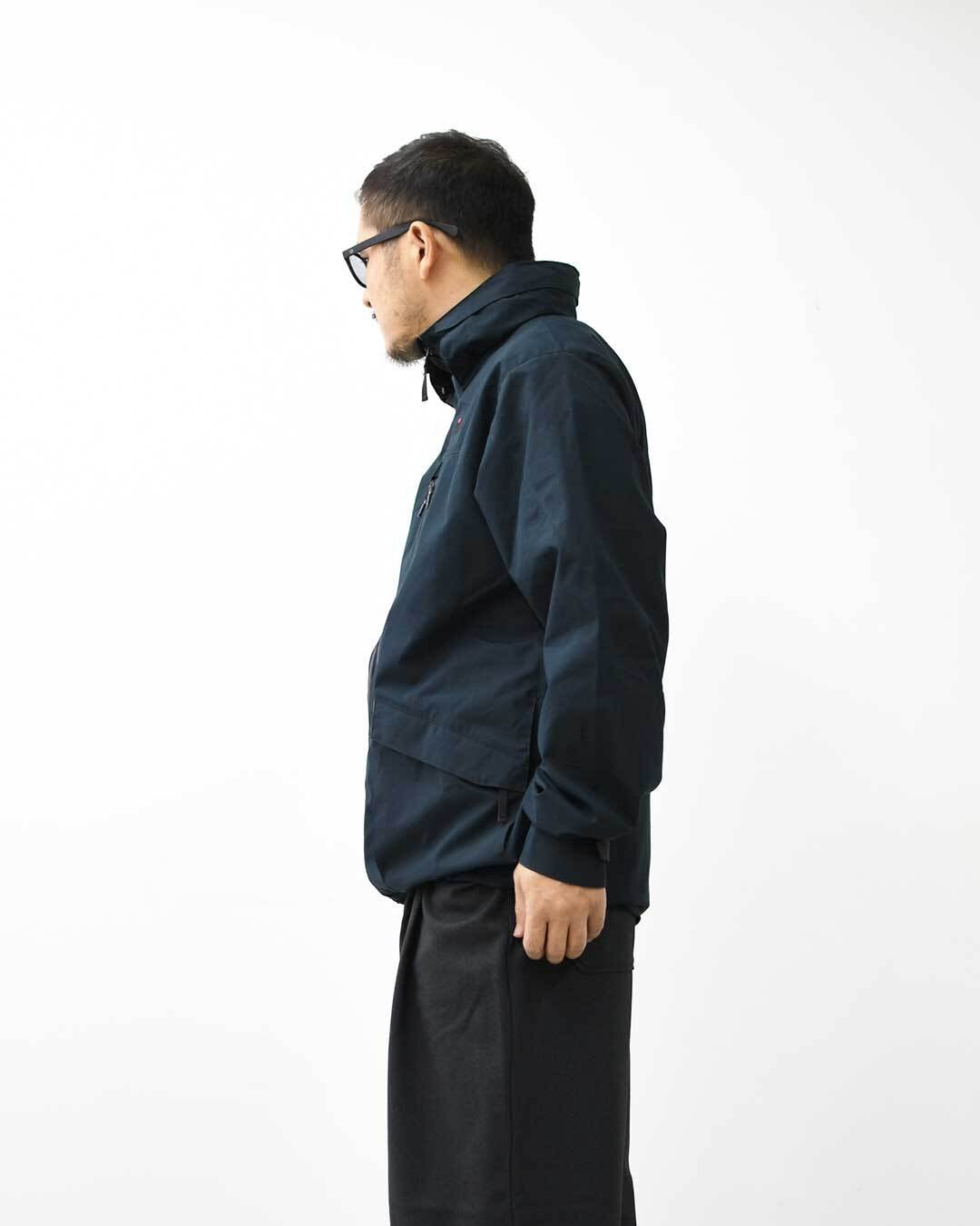 フードは襟に収納式。チェスト、フロントにそれぞれ2つのポケットを持ち、合計4ヶ所のポケットを装備する。