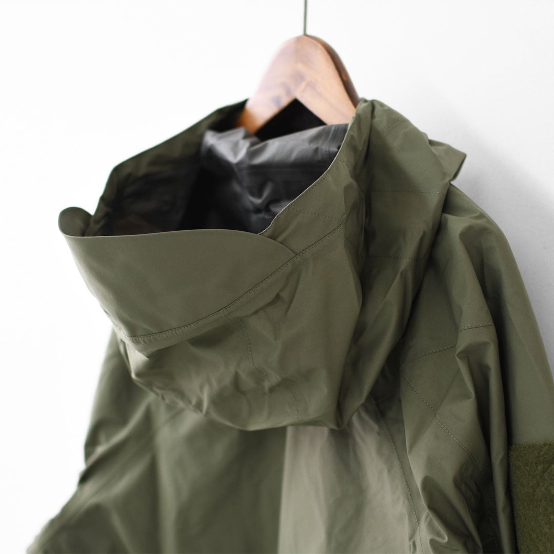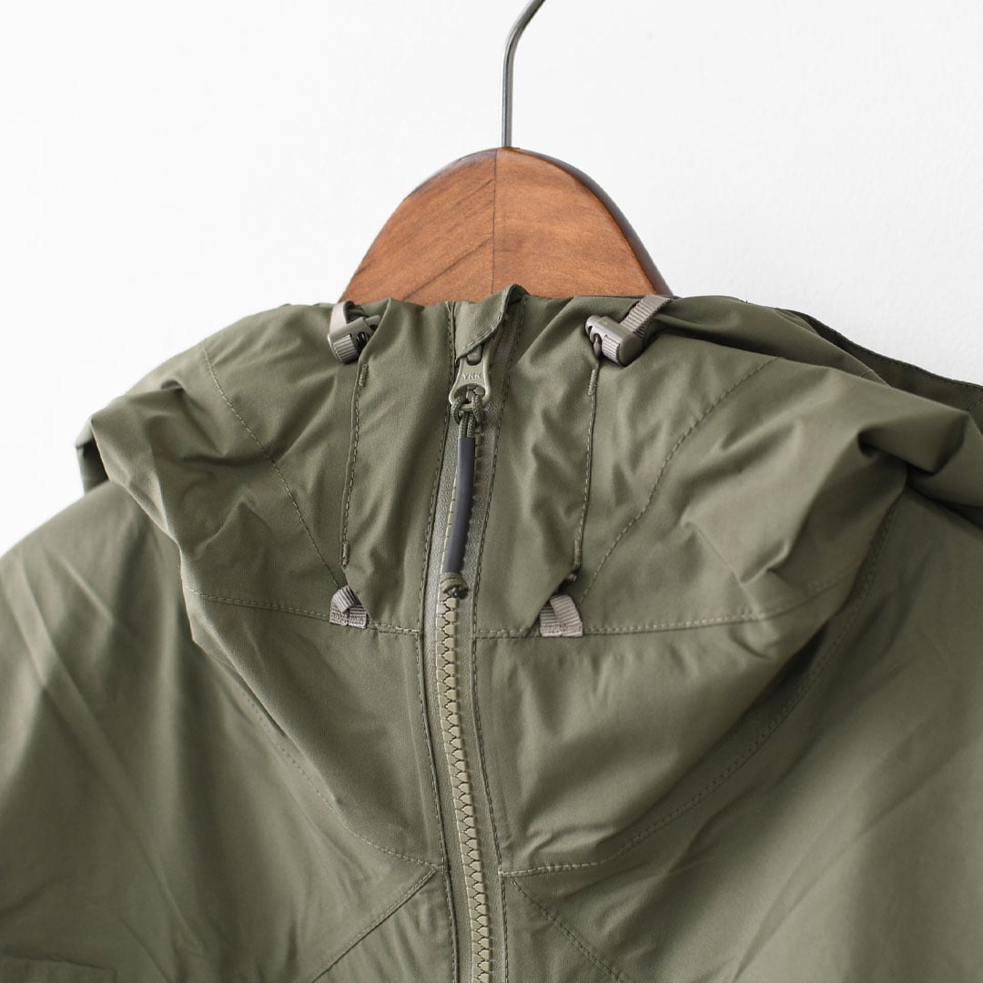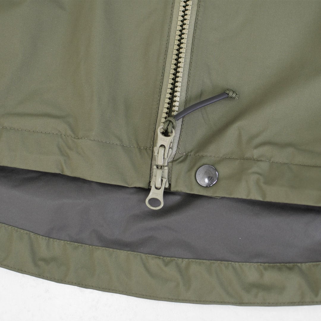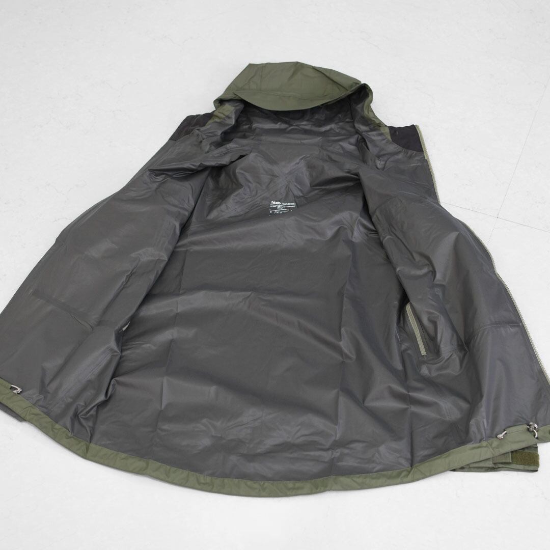 フロントの大きなチェストポケットはフラップ無しのwatertightファスナーを採用、軽量な2layerのGORE-TEXが採用されることで強靭なRAPTOR MiGとは違った魅力のあるジャケットに仕上がった。