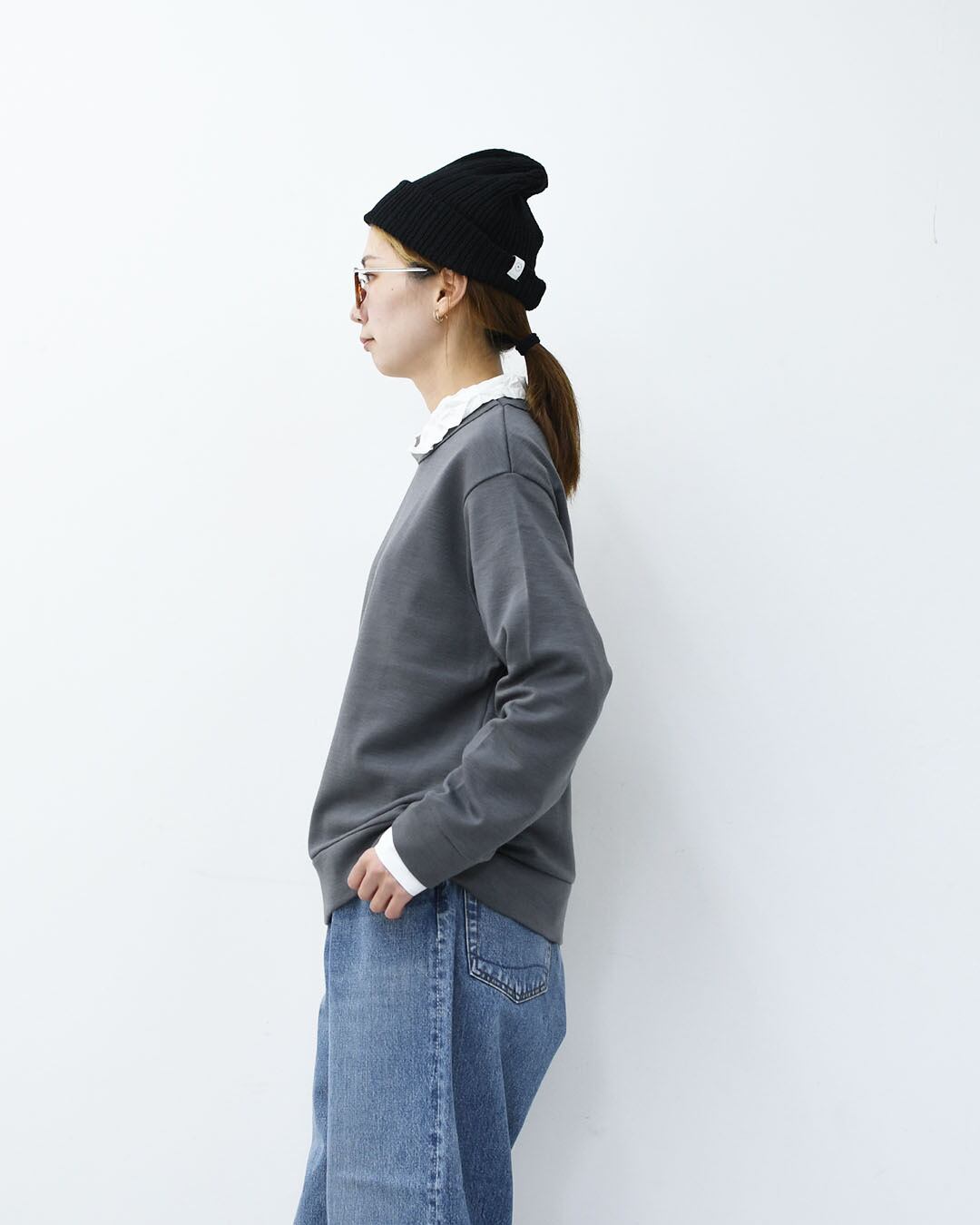 素材を生かすためにシンプルなデザインに留めたクルーネックです。