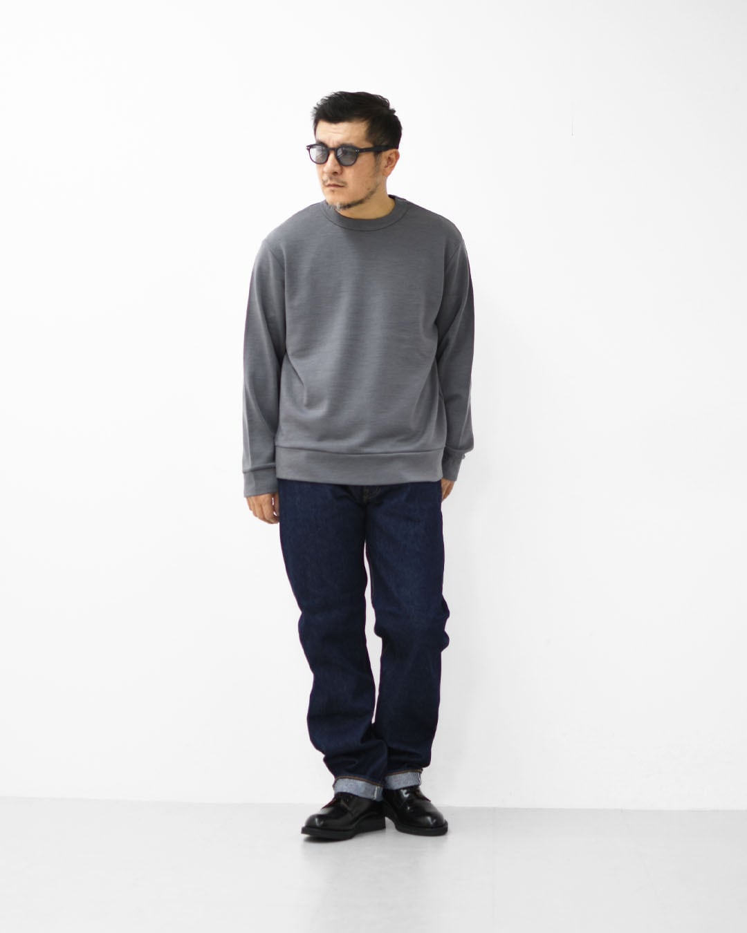 素材を生かすためにシンプルなデザインに留めたクルーネックです。