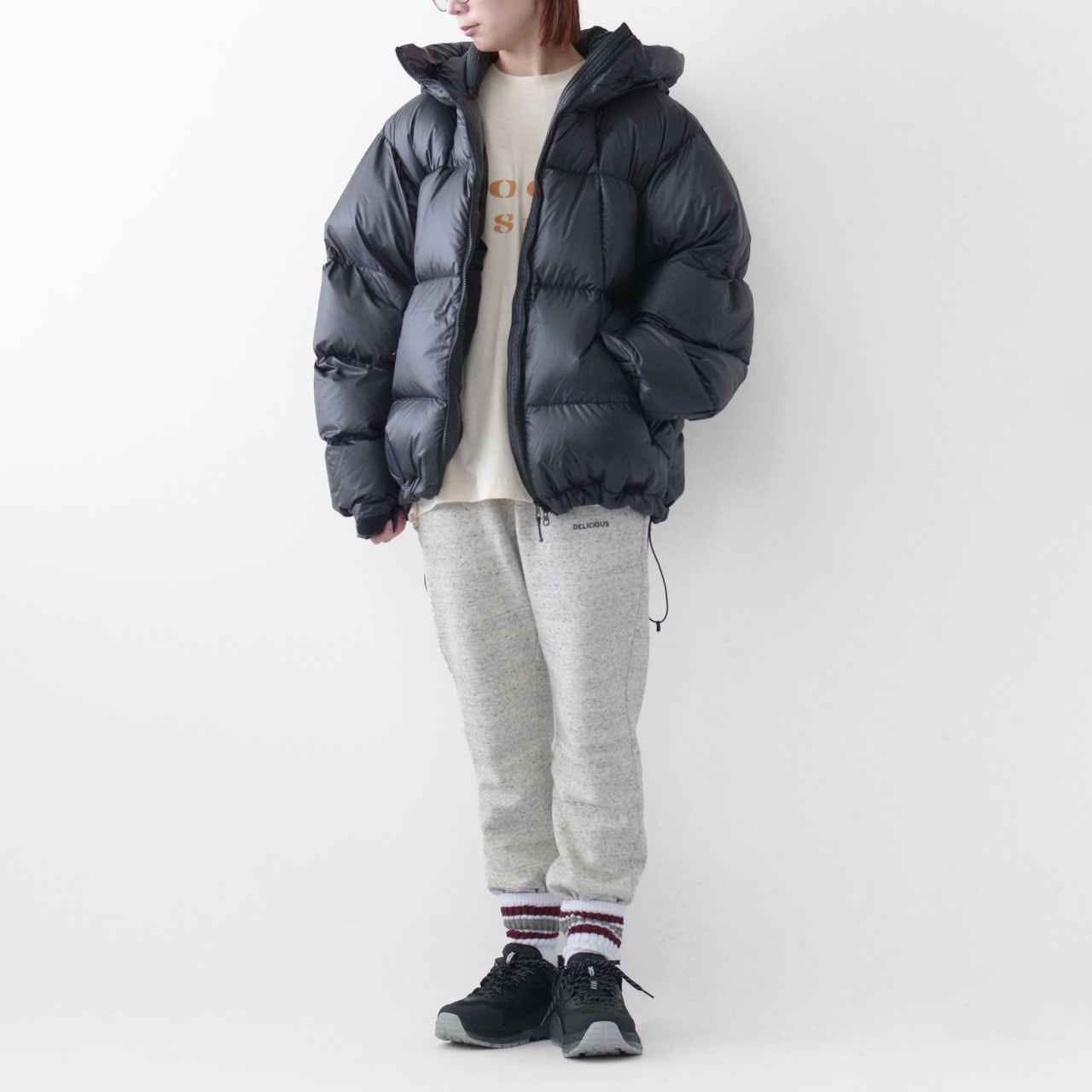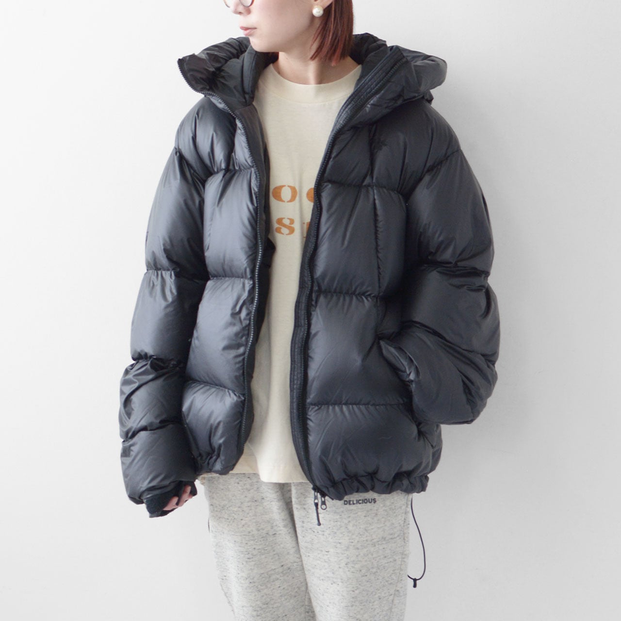シルエットはややゆとりのある設定で、ミドルレイヤーを重ねても窮屈にならず、寒い季節の重ね着にも対応。