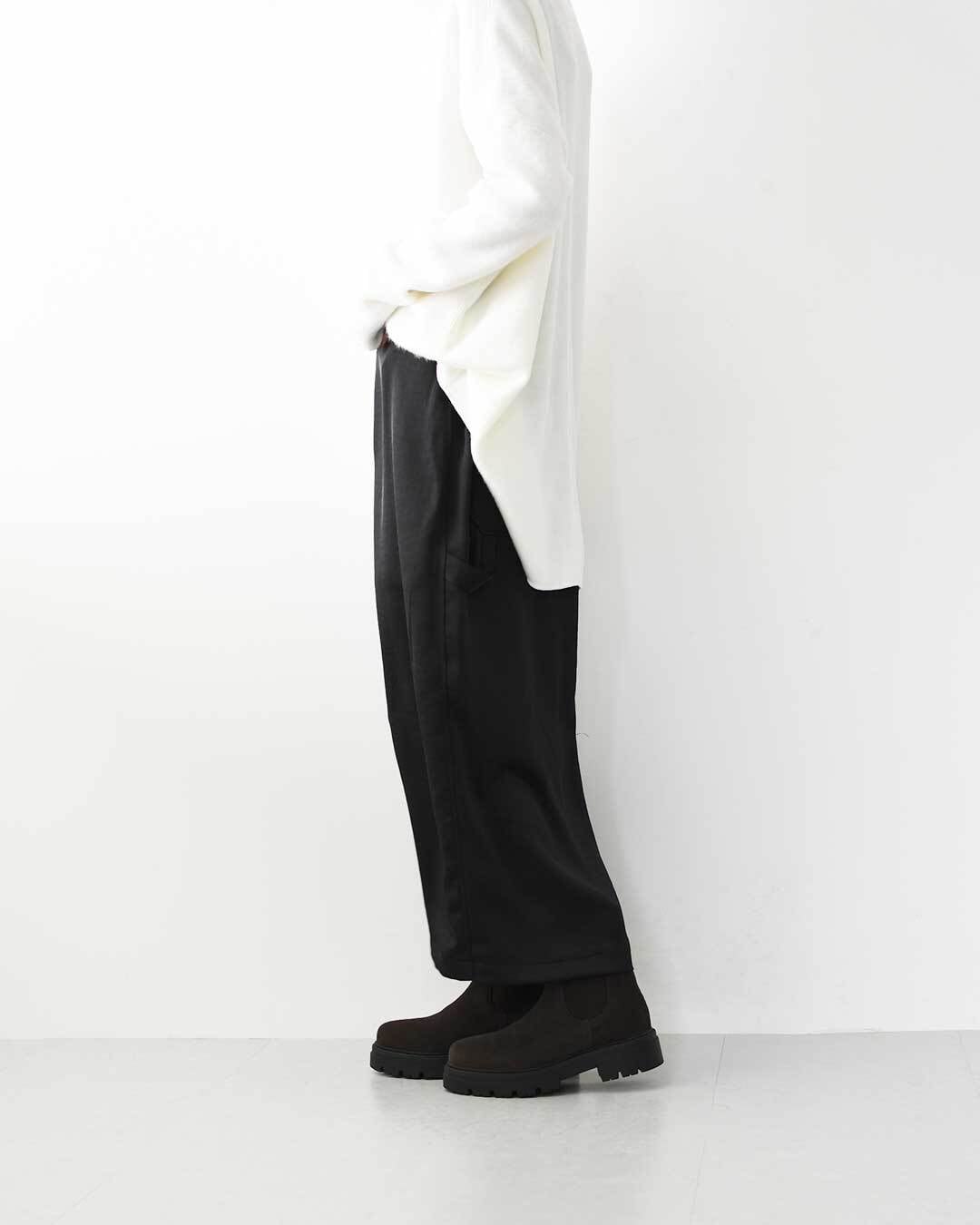 トップスをインしてもすっきりとまとまる、計算されたデザインです。