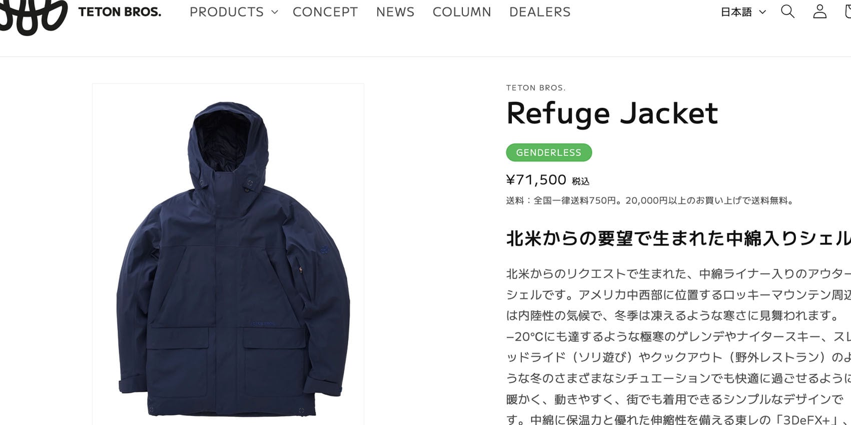 北米からの要望で生まれた中綿入りシェル